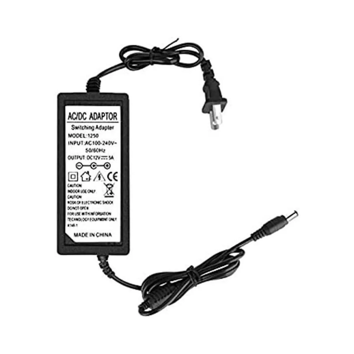 Fuente de alimentación de 12 V 5 A, adaptador de fuente de alimentación Waysse, convertidor de CA CC de 100 a 220 V a 12 voltios, transformador de 5 amperios, enchufe de 0.217 x 0.083 in para tira de luz LED, sistema de cámaras de seguridad DVR NVR, accesorios CCTV