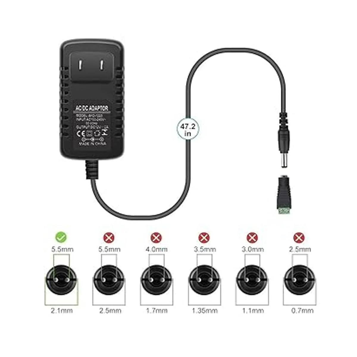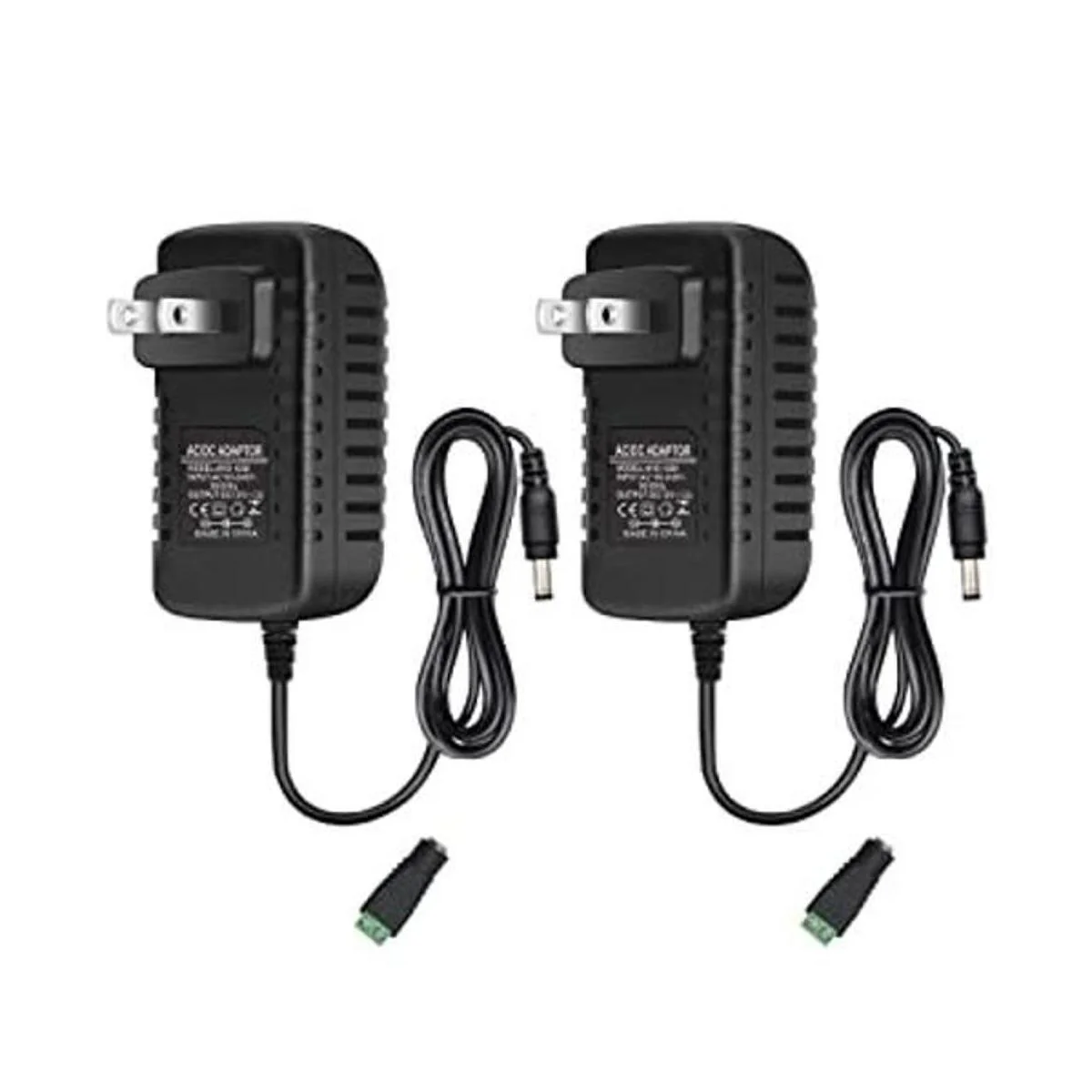 El paquete incluye: 2 fuentes de alimentación LED de 12 V, 2 A, 24 W con un cable de alimentación de 3.93 pies, 2 conectores de barril hembra de 5.5/2.1 CC a adaptador de tornillo.