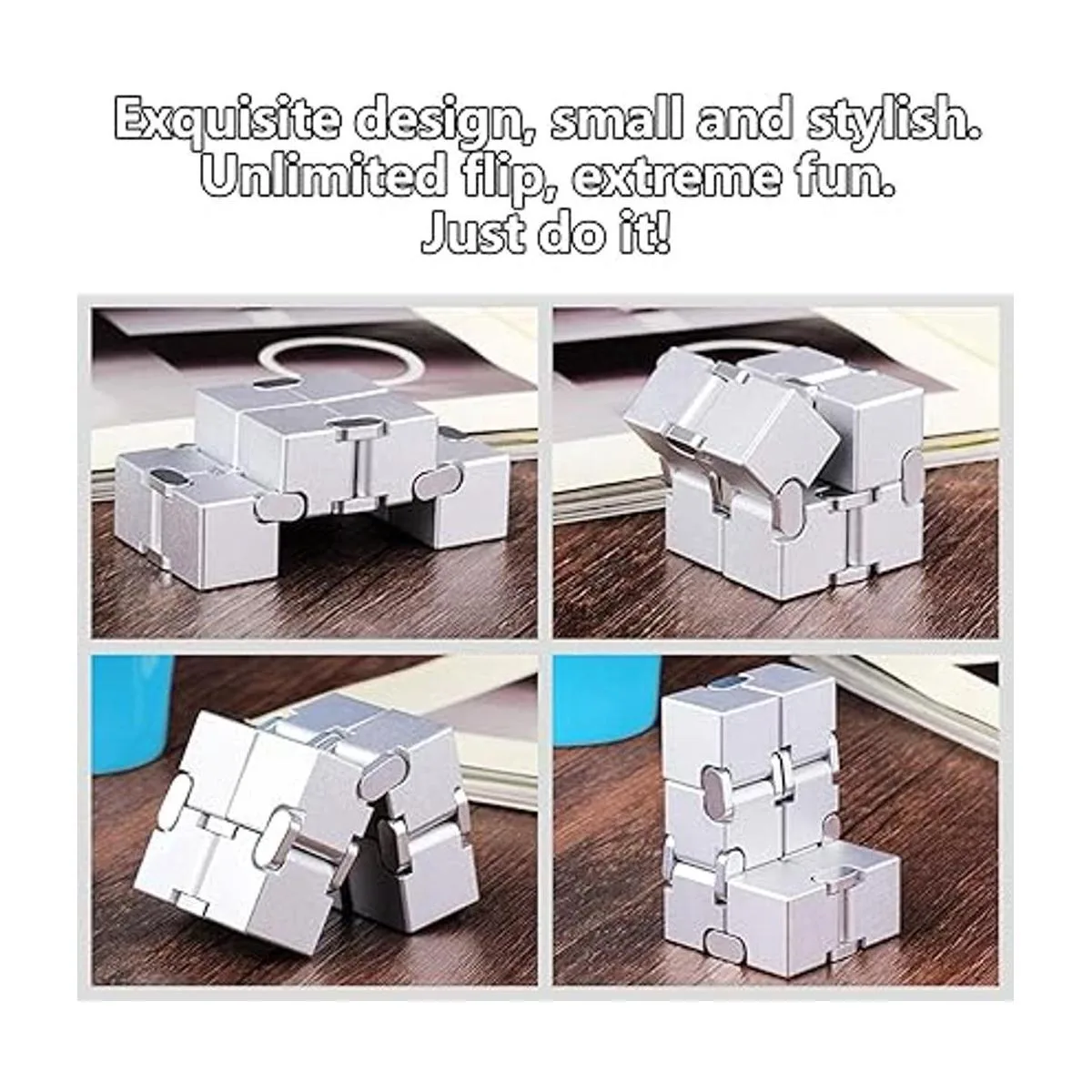FUFUYOU Cubo infinito de metal para la ansiedad, juguetes para aliviar el estrés para hombres, material de aleación de aluminio, ultra duradero negro
