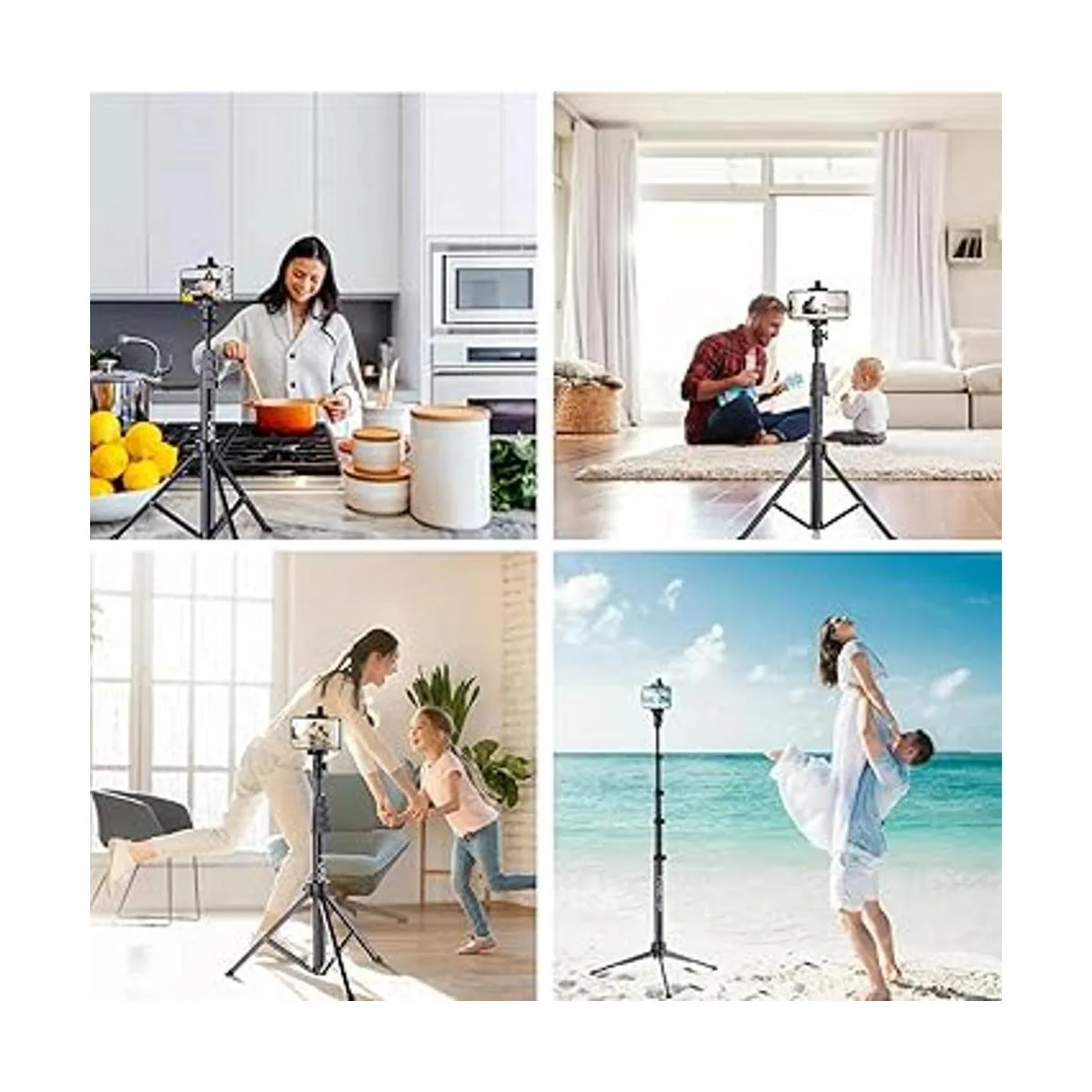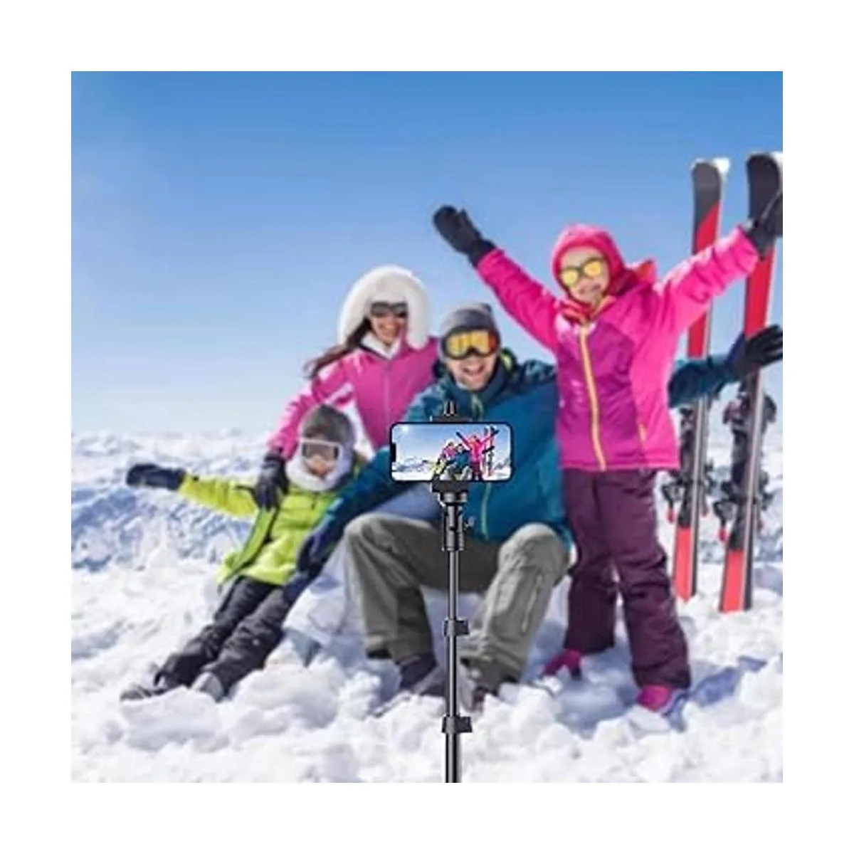 Trípode integrado: extiende los pies antideslizantes para un trípode independiente para teléfono celular. Seguro y fiable. Aluminio ligero, fácil de transportar.