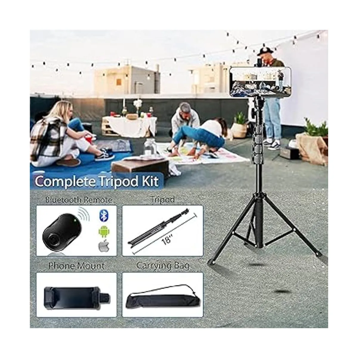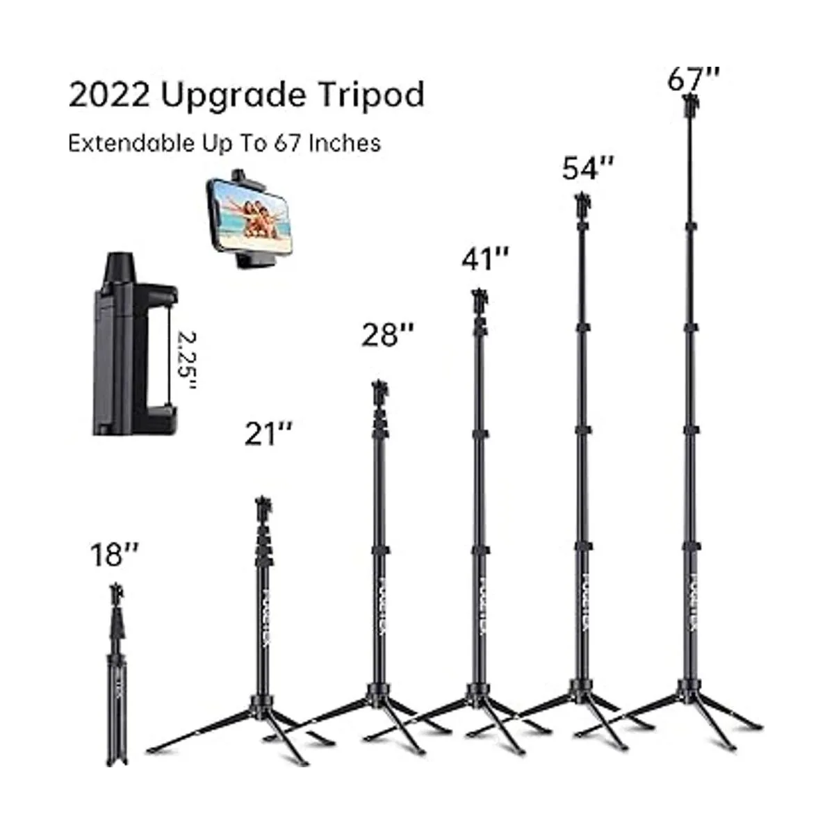 Fugetek Trípode profesional para teléfono celular de 67 pulgadas, portátil, todo en uno, control remoto Bluetooth, soporte para teléfono, compatible con dispositivos iPhone y Android, pies antideslizantes, color negro