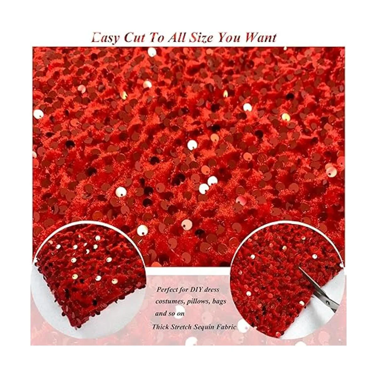 Uso amplio de tela con purpurina roja La tela de lentejuelas de terciopelo se puede recortar fácilmente en diferentes formas y tamaños como quieras. Ideal para medias, cartera, almohadas, vestidos, disfraces, ropa de baile, falda, bolsos, proyectos escolares, faldas de árbol, posavasos, mantel, telón de fondo, camino de mesa y mucho más