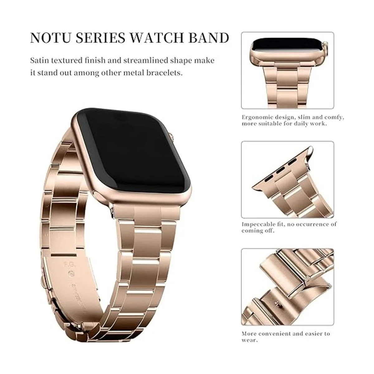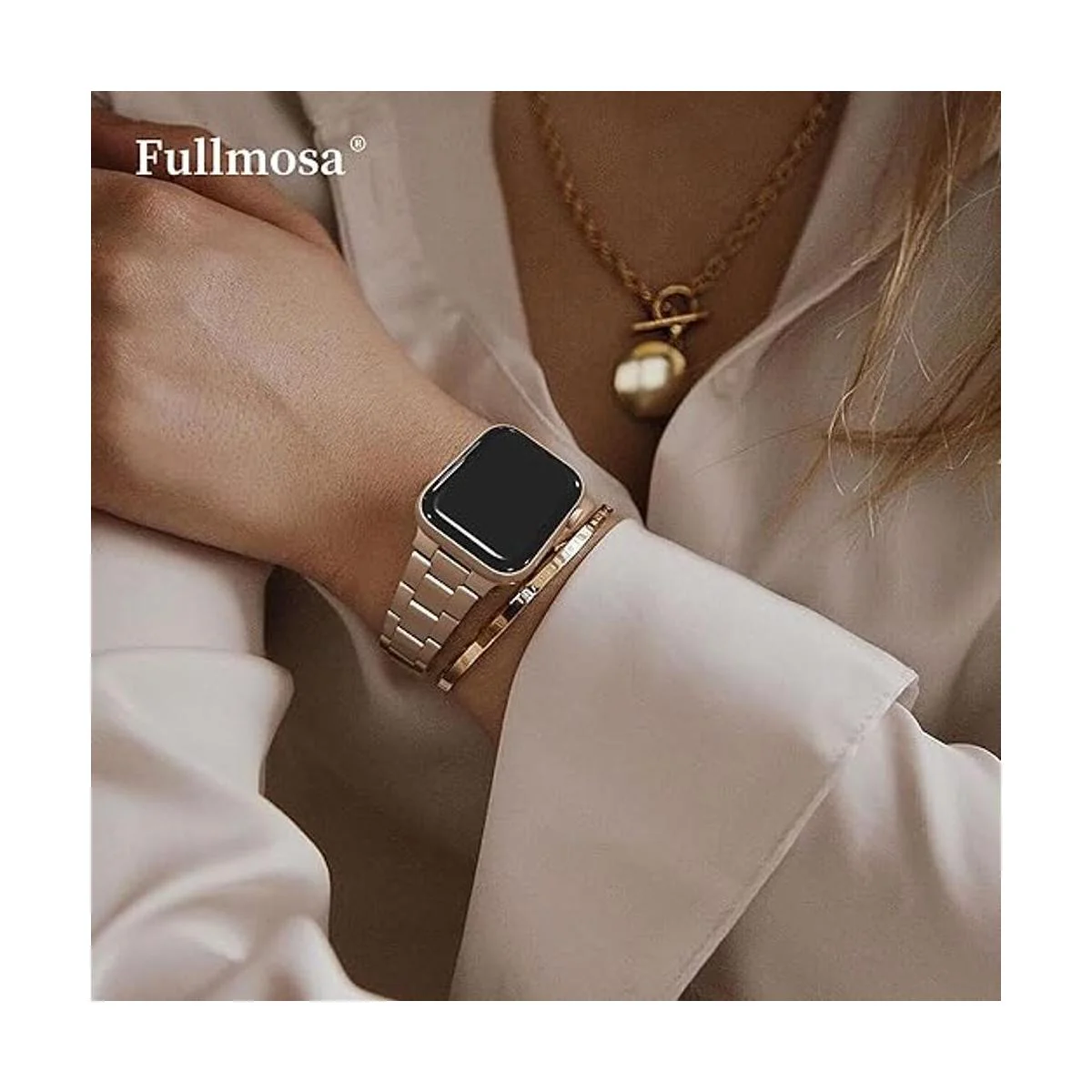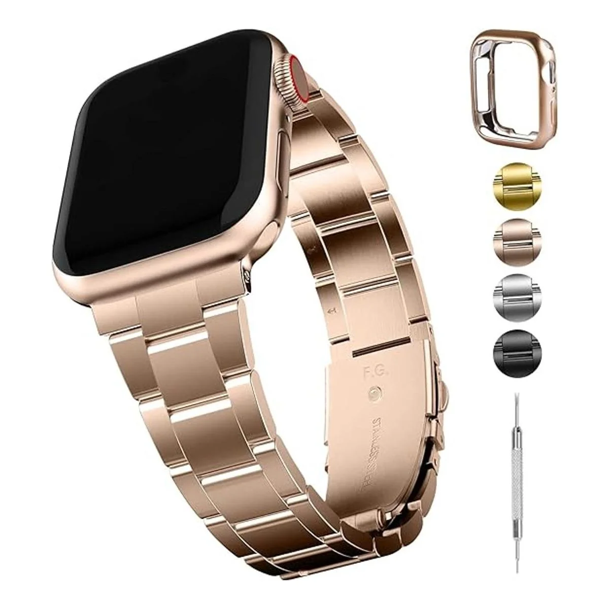 Fullmosa No necesita herramientas Correa compatible con Apple Watch de 45444241401.496 in, versión actualizada, correa de acero inoxidable para iWatch con funda para Apple Watch Series 87654321SE2SE, 1.49 pulgadas, 1.57 pulgadas, oro rosa
