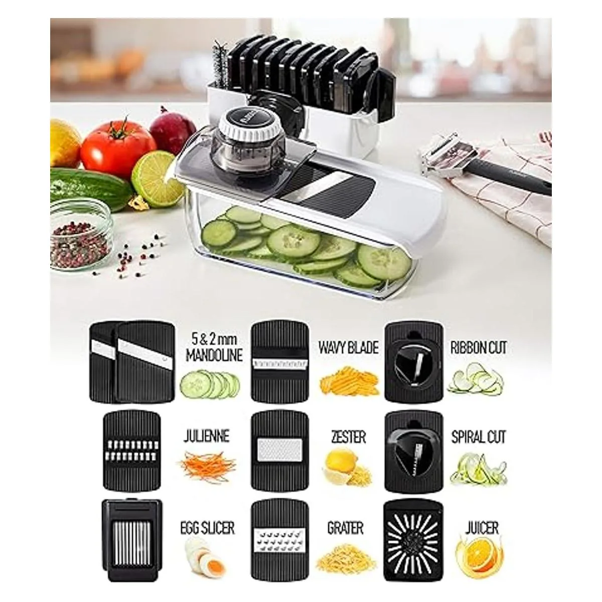La mandolina definitiva. Todo lo que necesitas y más para rebanar, rallar, pelar, cintar, jugo o espiralizar en la cocina con este dispositivo esencial 11 en 1 de Fullstar