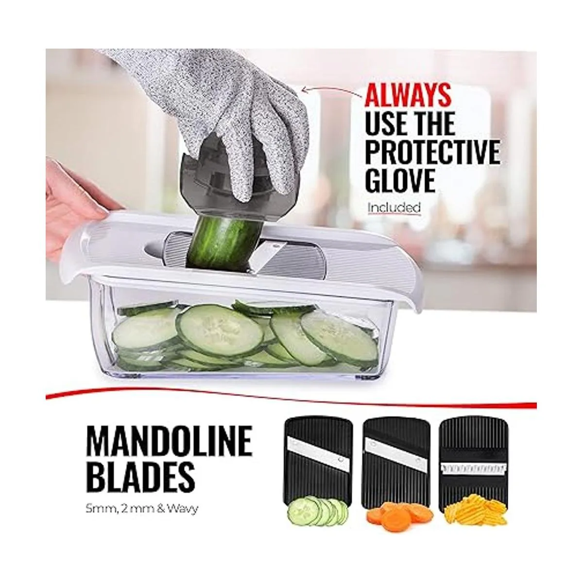 Fullstar Cortadora de mandolina 11 en 1, cortadora de verduras y rallador de queso, utensilios de cocina con pelador, espiralizador, exprimidor, freidora francesa y cortador de juliana guante de seguridad y cepillo de limpieza