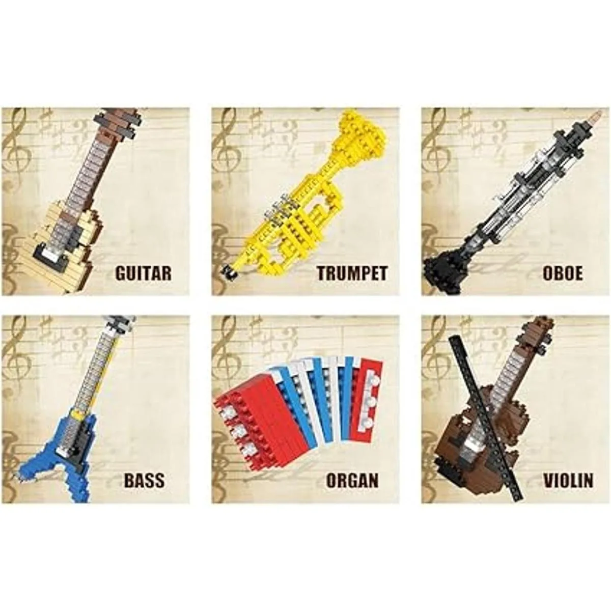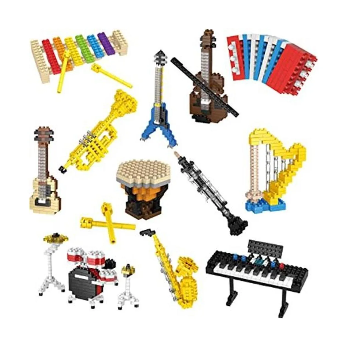 Micro bloques de construcción: este bloque de construcción de instrumentos musicales es un bloque de construcción en miniatura. Nota: no apto para niños menores de 6 años. Se requiere la supervisión de los padres todo el tiempo.