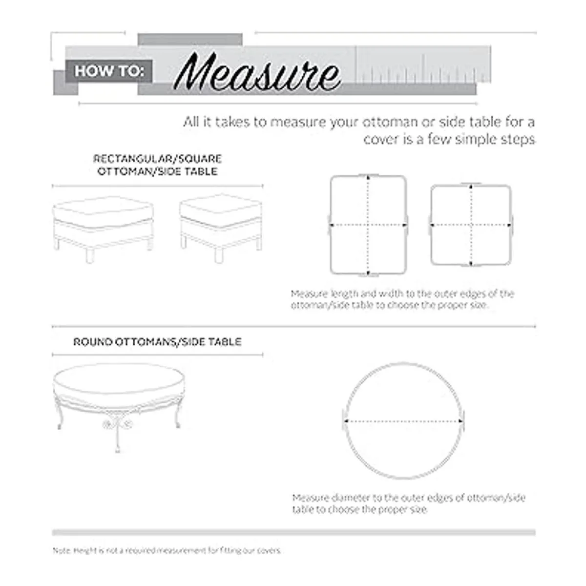 Se adapta a las otomanas rectangulares y a las mesas laterales de hasta 32 pulgadas de largo x 22 pulgadas de ancho x 17 pulgadas de alto.
