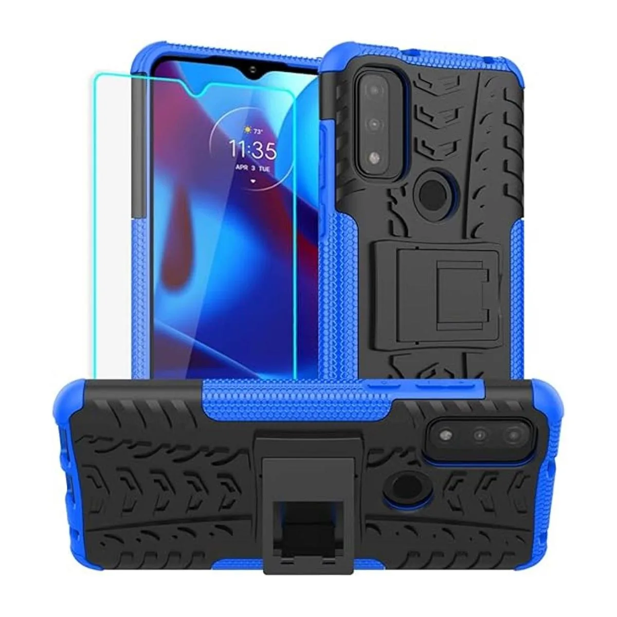 Funda compatible con Moto G Pure para Moto G Pure con protector de pantalla HD, protector de silicona a prueba de golpes con soporte rígido para Moto G Pure azul