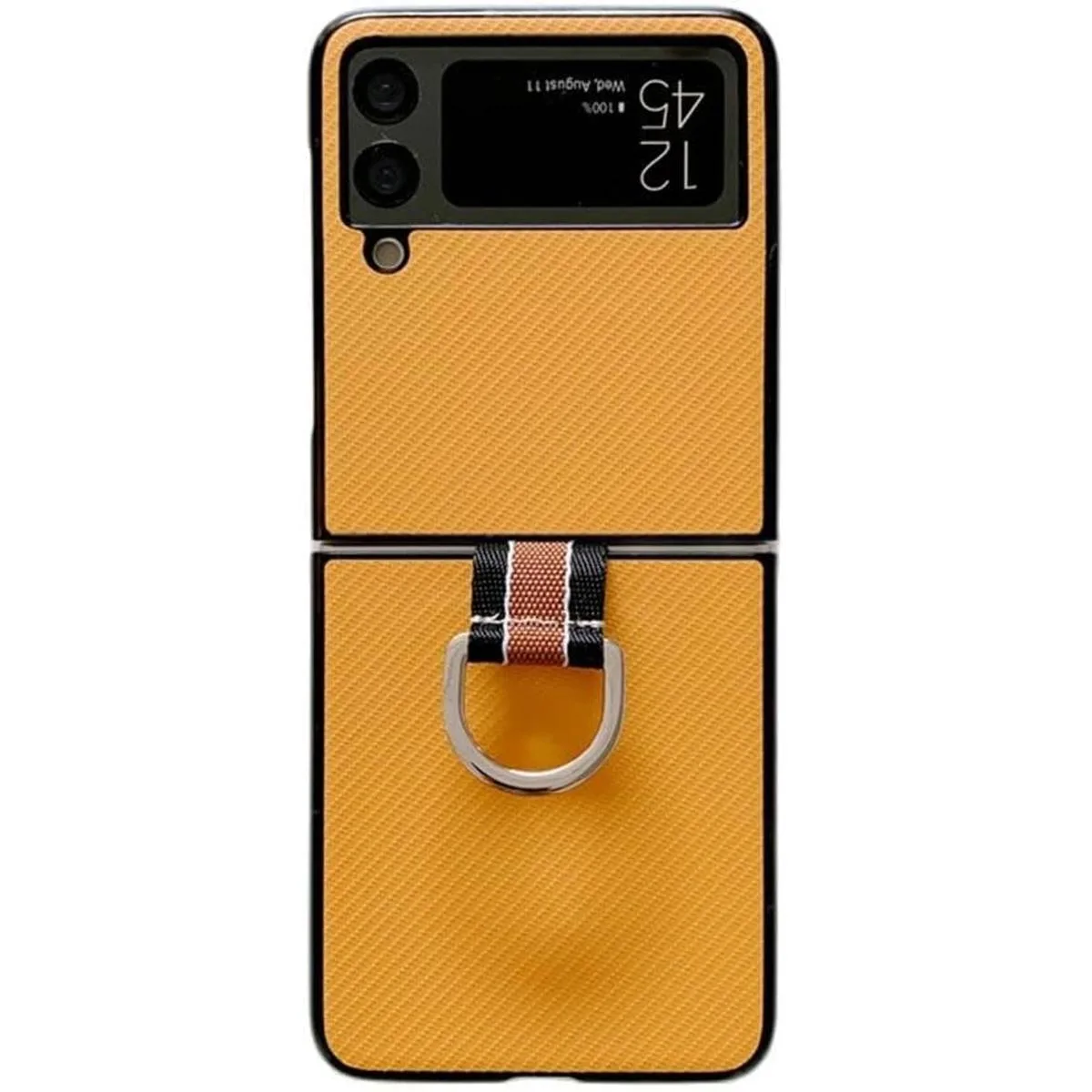 Funda con anillo compatible con Samsung Galaxy Z Flip 3 5G, funda de lujo ultra delgada, bonita cubierta de plástico duro de piel sintética, a prueba de golpes, a la moda para Galaxy Z Flip 3 5G 2021 amarillo