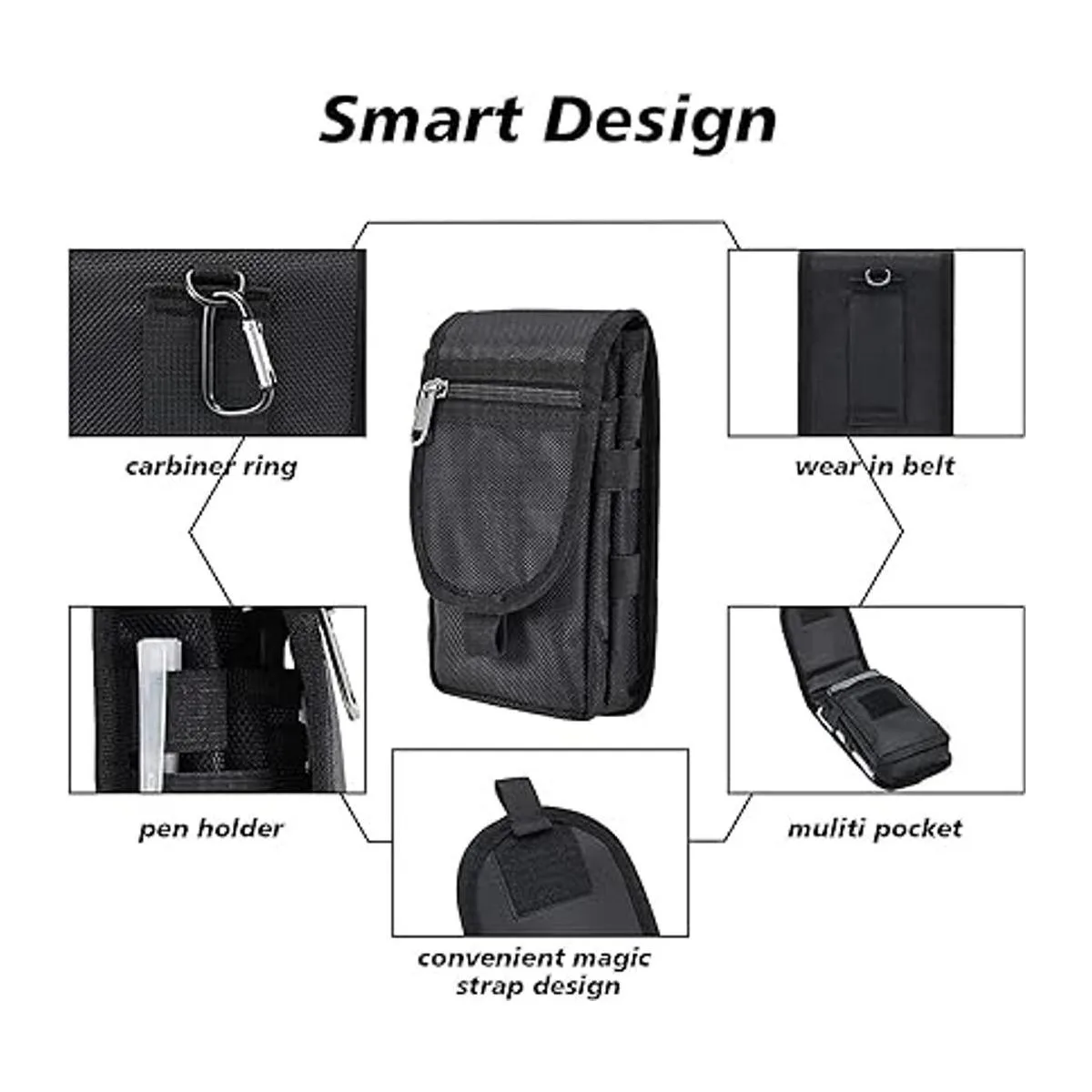 Funda con varios bolsillos para celulares o cosas prácticas y pequeñas, con lengüeta y mosquetón para llevar colgada del cinturón, mochila, etc., funda multifuncional para llevar en la cintura, para acampada, barbacoa