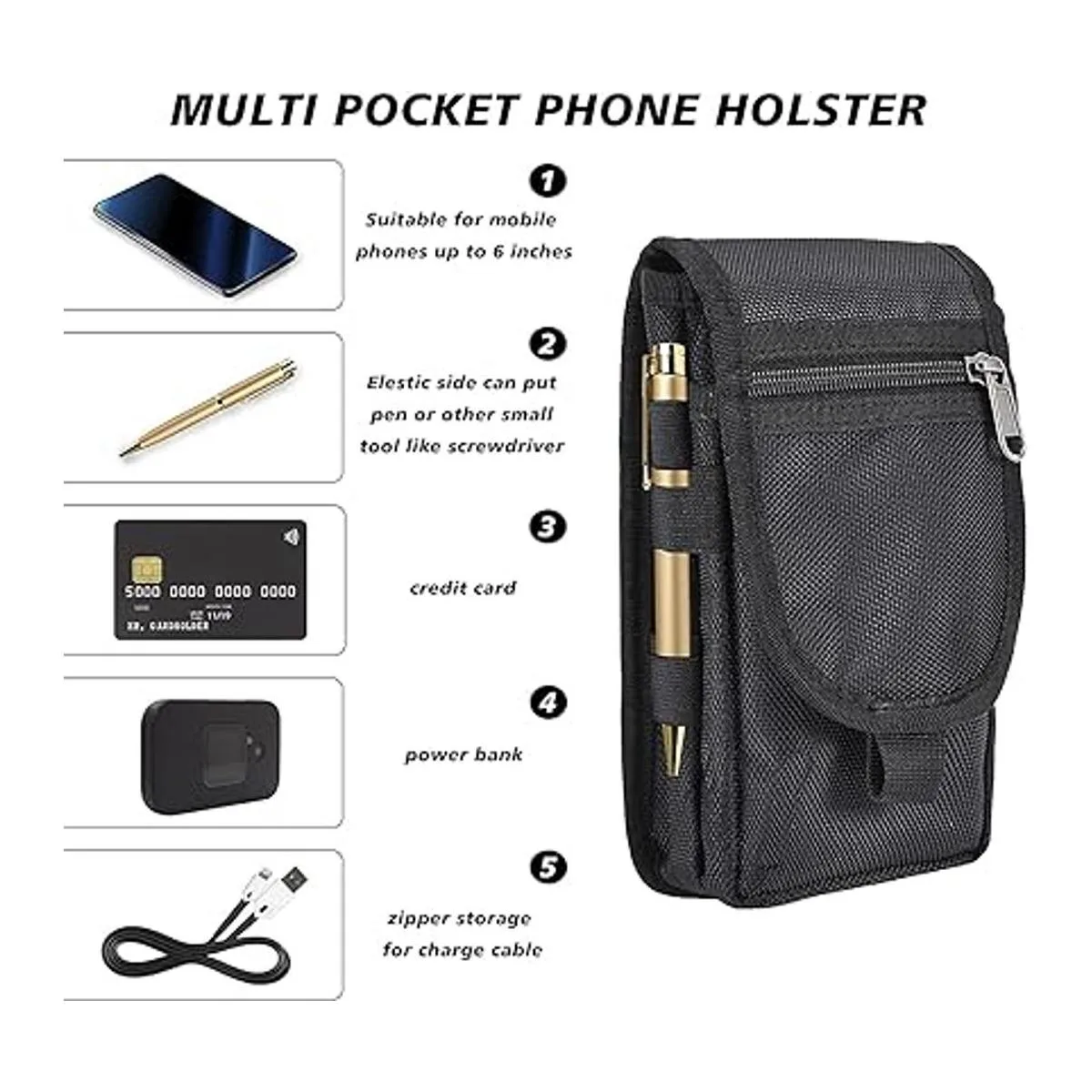 Versátil: Esta funda para celular, herramientas o accesorios se puede colgar, con lengeta o clip, en cinturones de trabajo, tirantes, pantalones, etc.