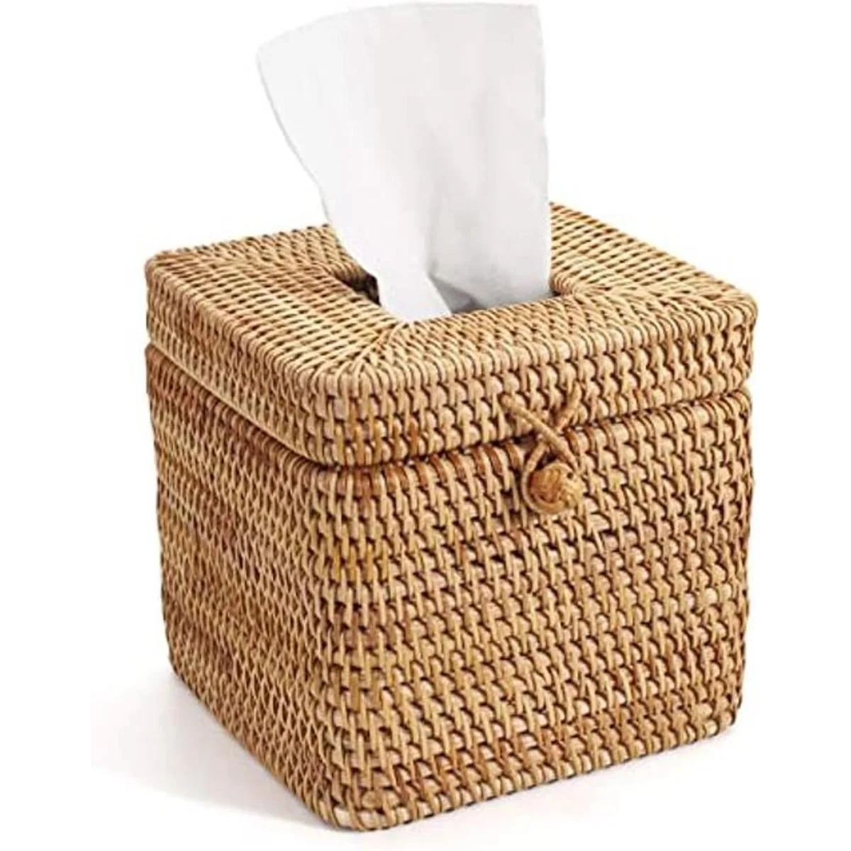 Tapa superior con bisagras: hace que sea conveniente cambiar pañuelos, el material de ratán también puede fijar tu caja de pañuelos para que no se mueva.