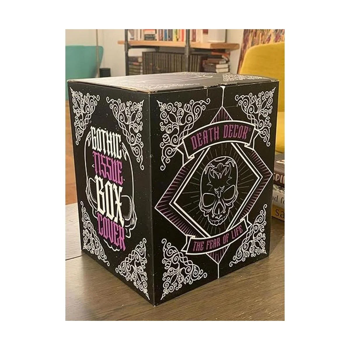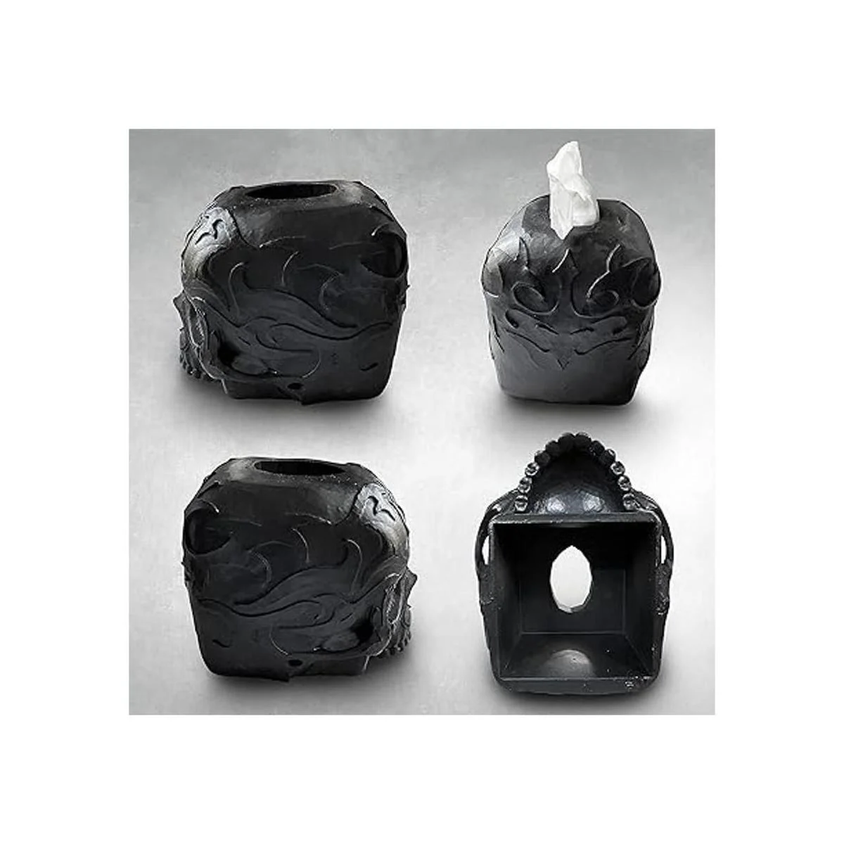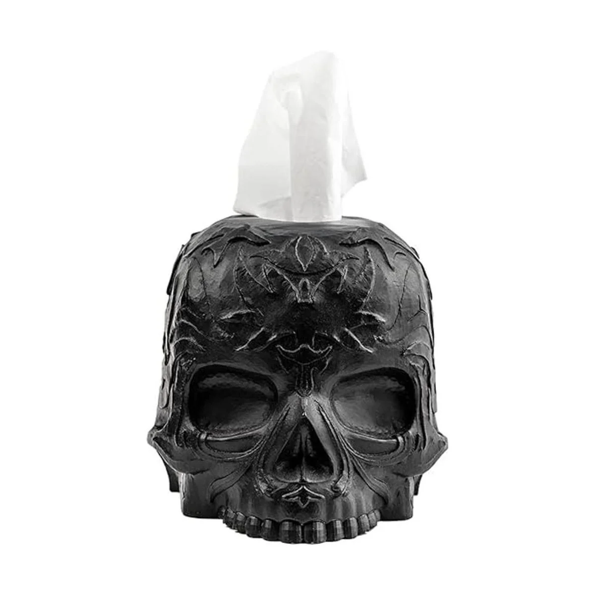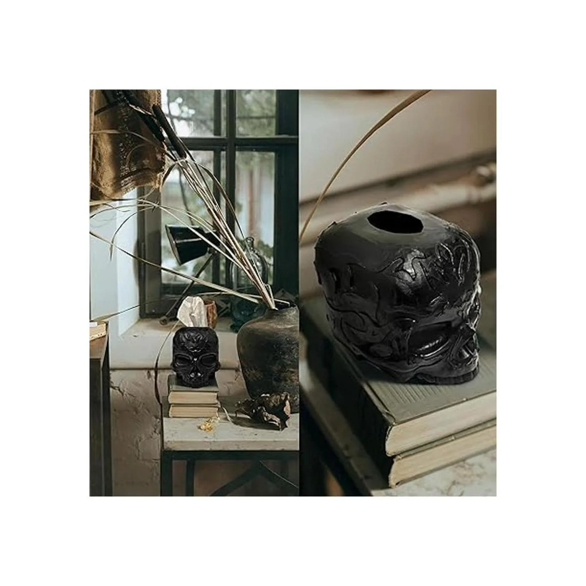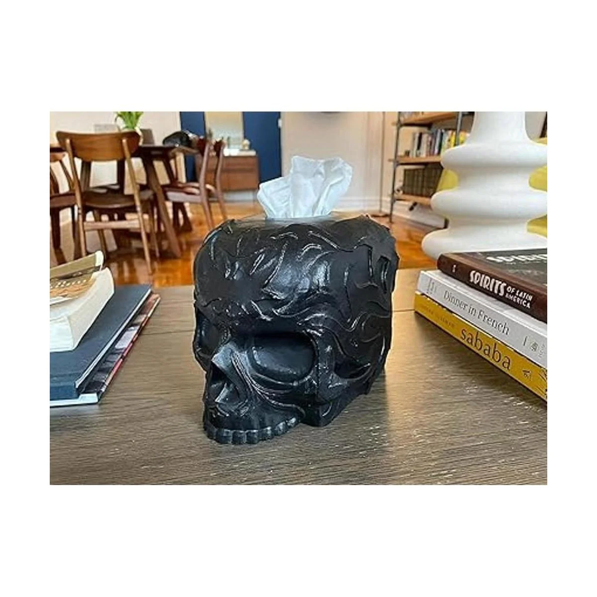 Funda de caja de pañuelos, calavera gótica para encimera, moderna, tocador, cómoda, organizador, decoración, regalo, soporte de calavera, Navidad, se adapta a la mayoría de cajas cuadradas de pañuelos negro