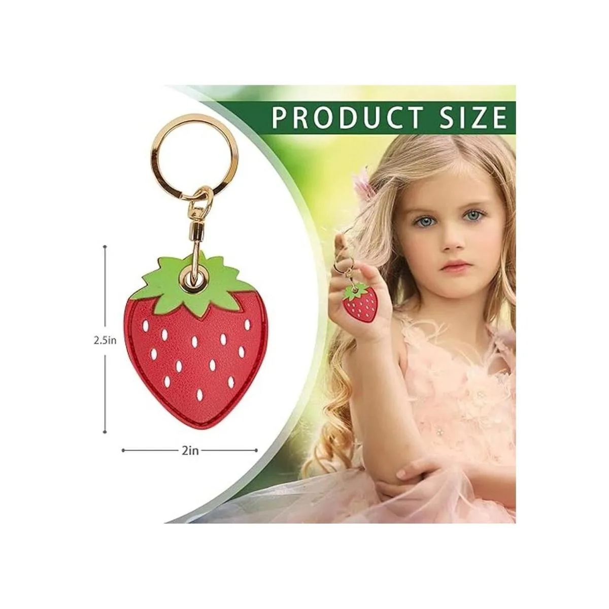 Funda de cuero para llavero compatible con Apple AirTag, GPS AirTag Llavero rastreador con llavero, cubierta protectora antiarañazos para llaves, cartera fresa