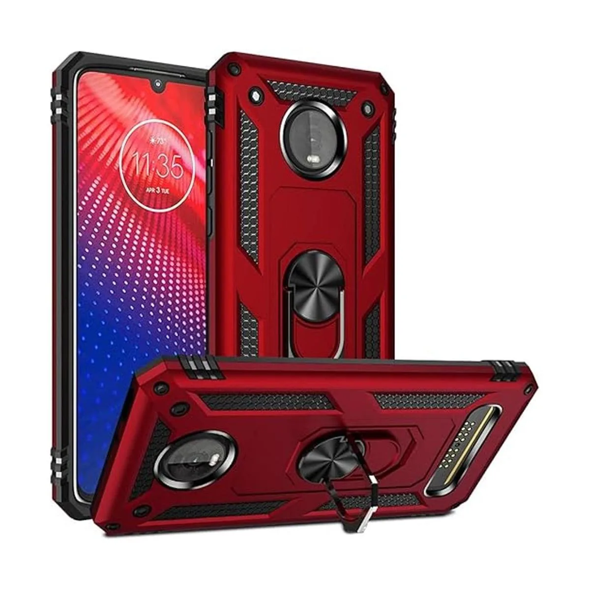 Funda de impacto de grado militar para Motorola Moto Z4, funda de juego Moto Z4 360, anillo giratorio de metal, soporte magnético para montaje en automóvil, funda resistente Z4 Z4 Play Z4 Force para teléfono rojo