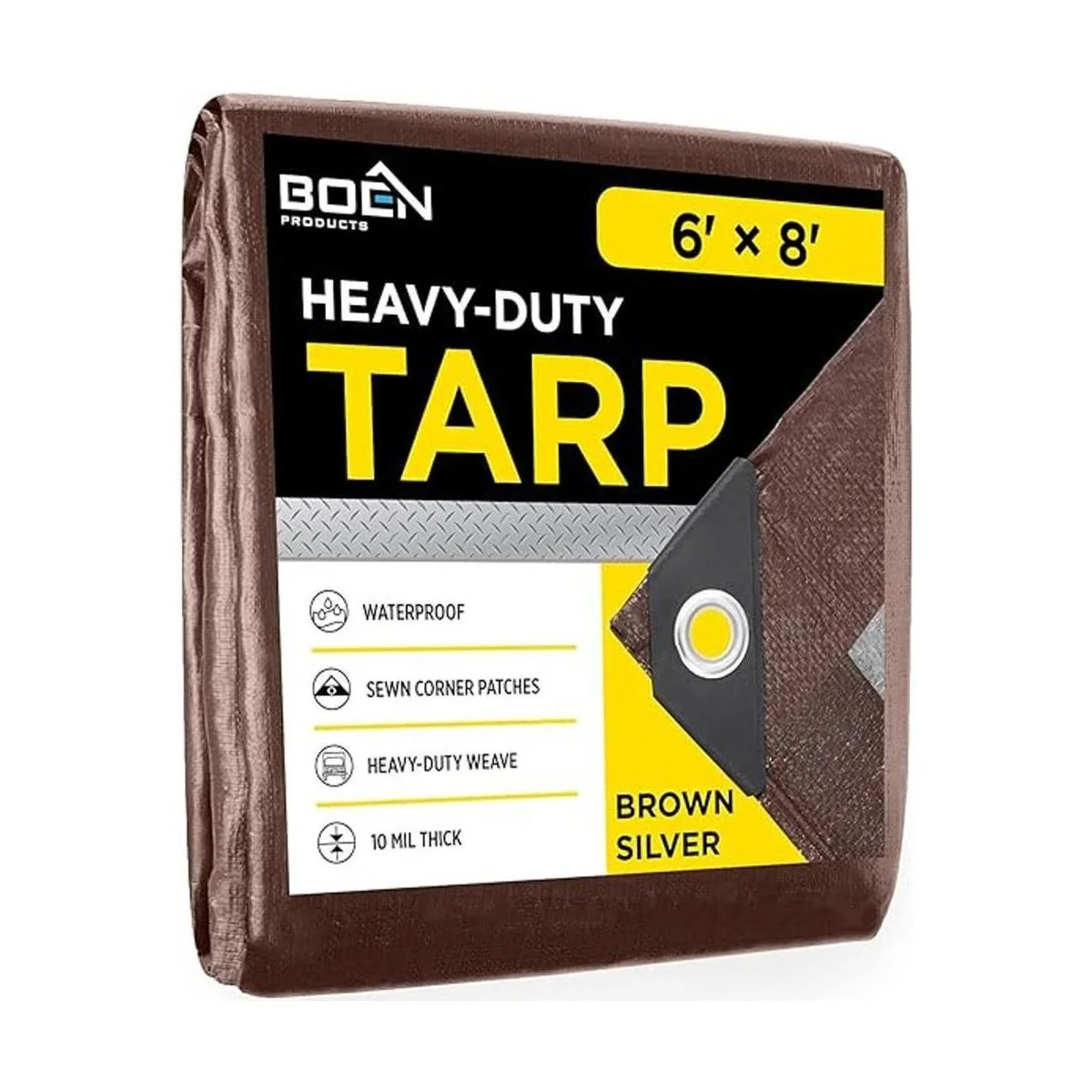 Funda de lona resistente de 10 mil de grosor multiusos, impermeable, lona ideal para toldos, barcos, casas rodantes o cubierta de piscina, sombra y más 6 x 8 pies, marrónplateado