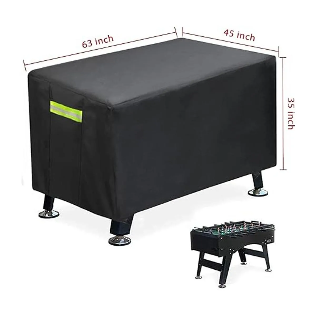 Se adapta a la mayoría de mesas de fútbol: el tamaño de nuestra funda es de 64 x 46 x 35 pulgadas largo x ancho x alto, se adapta a la mayoría de mesas de futbolín estándar