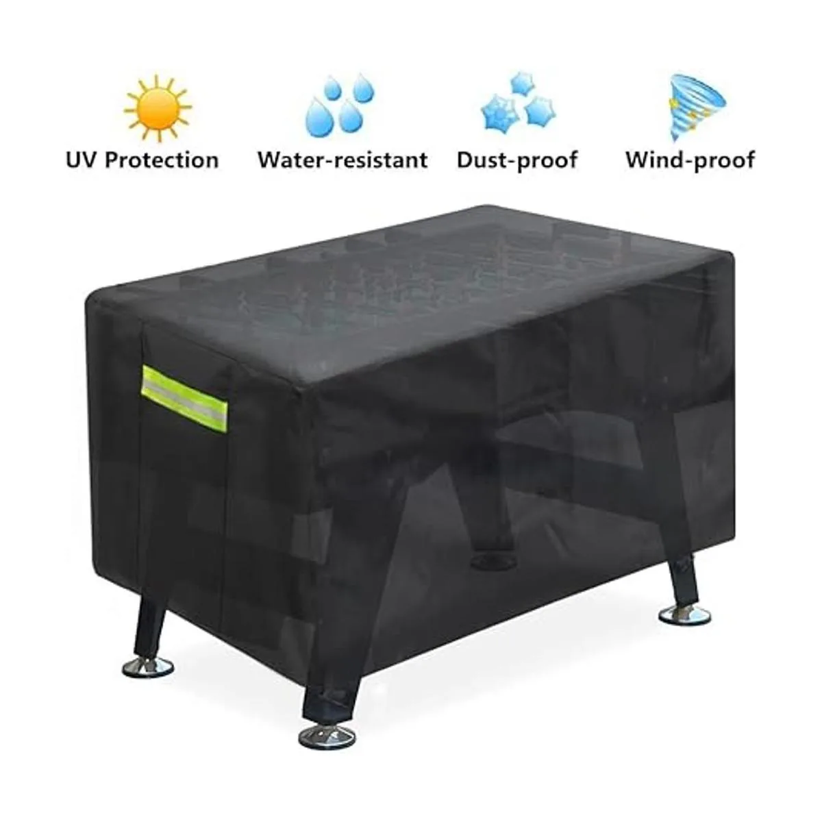 Diseño resistente al viento: esta funda protectora está equipada con una banda elástica ajustable, y tiene bandas de clip que van alrededor de las patas de la mesa, por lo que no tienes que preocuparte por el impacto del clima ventoso