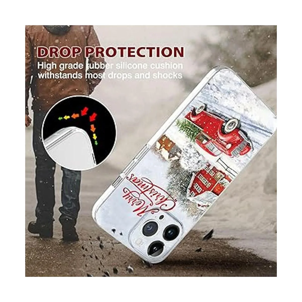 Protección de pantalla y cámara: la bonita funda de Navidad para teléfono ofrece protección para la pantalla y la cámara contra arañazos y garantiza más protección para tu teléfono. Diseño único de absorción de impactos: 4 esquinas absorben eficazmente los golpes.