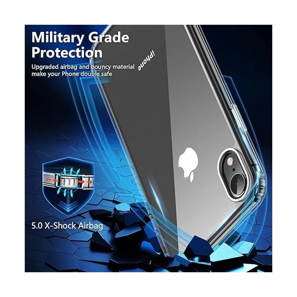 Funda de protección militar contra caídas de 12 pies, con 2 protectores de pantalla de vidrio templado, funda de protección resistente para teléfono, transparente