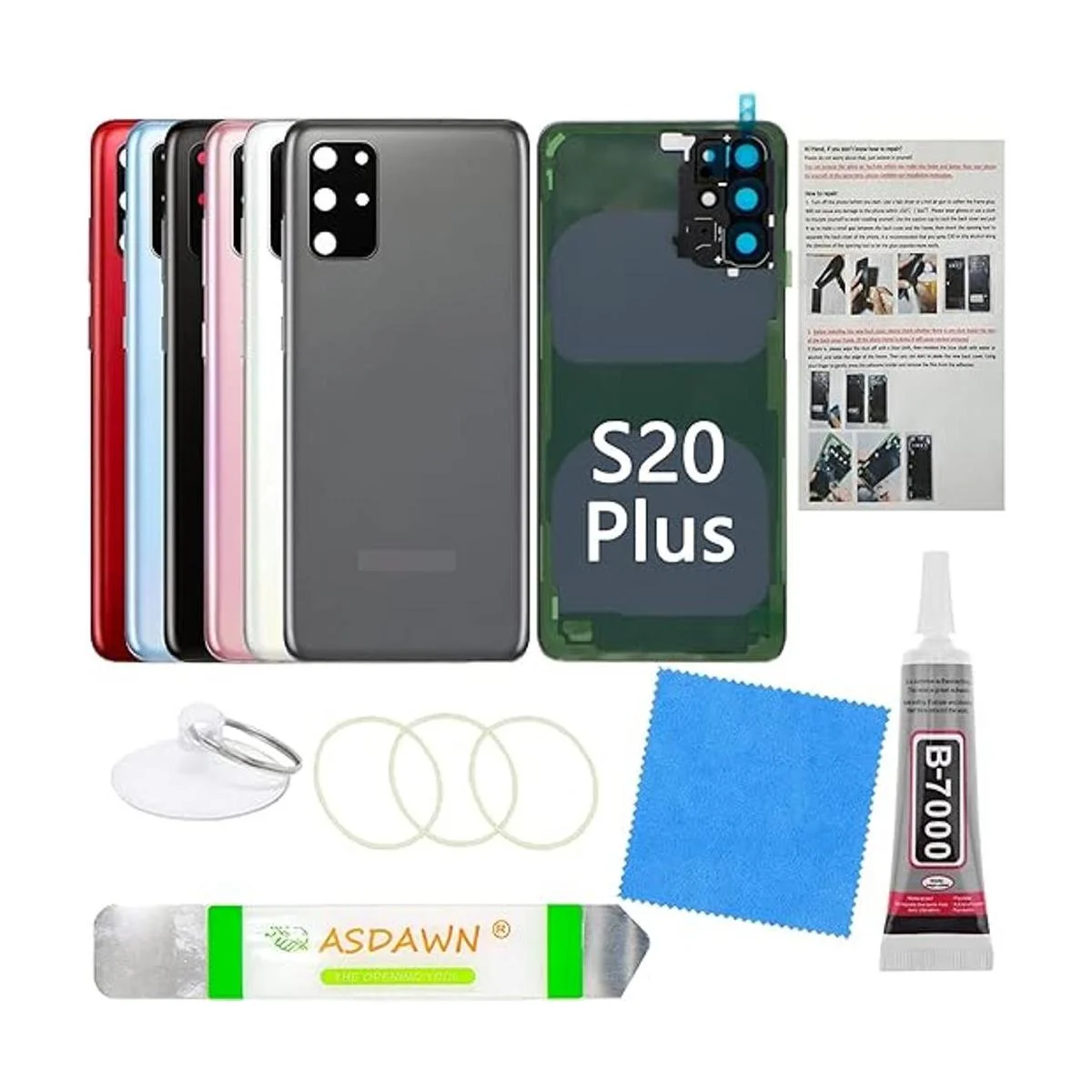 Funda de repuesto para Galaxy S20 con panel de vidrio trasero con manual de instalación lente de cámara preinstalada todo el adhesivo kit de herramientas para Samsung Galaxy S20 Plus 5G SMG985 SMG986 All Carriers gris cósmico
