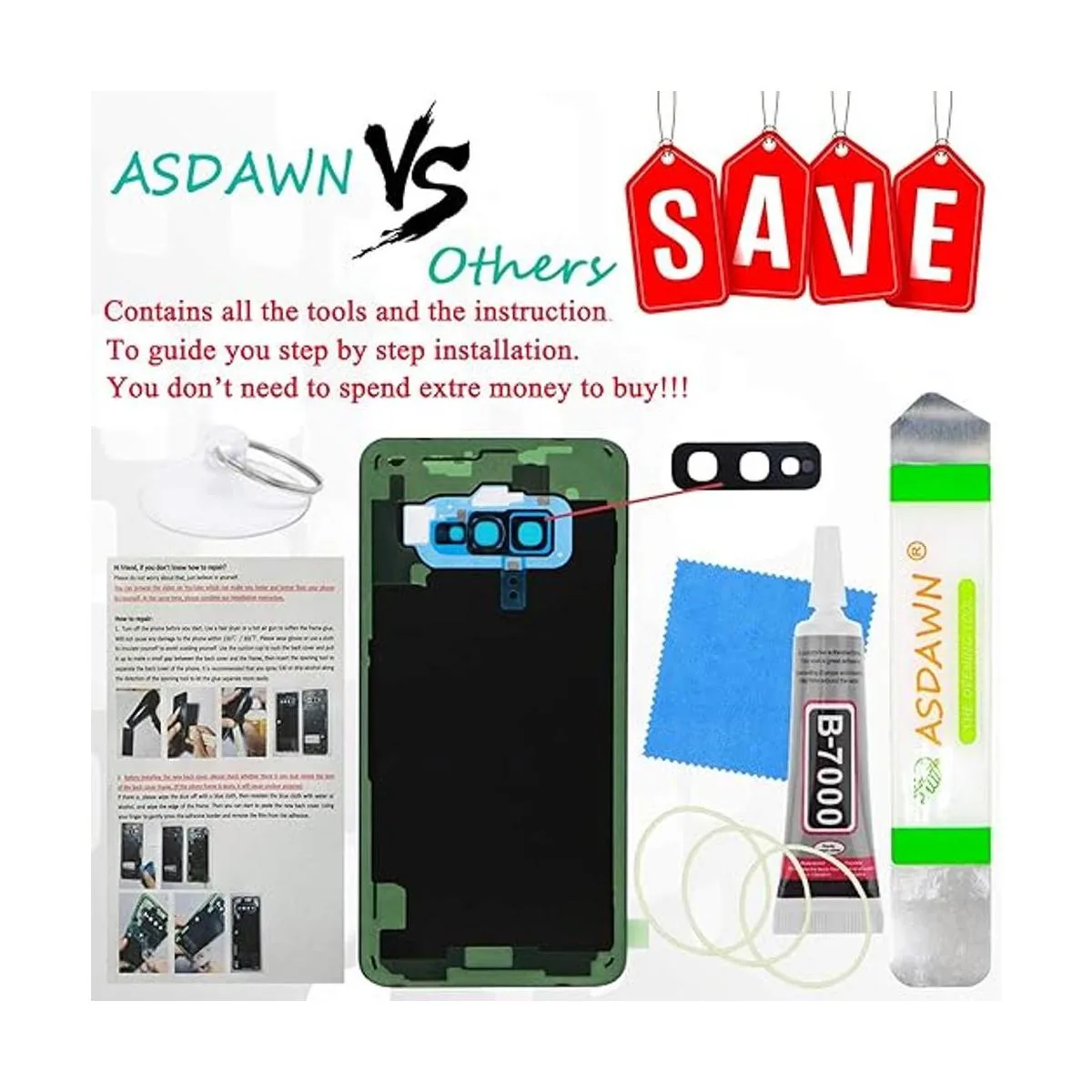 Fácil instalación y ahorra dinero Reemplazo de ajuste 100 perfecto. La carcasa de la puerta trasera de cristal para Galaxy S10e viene con lente de marco de cámara preinstalada, adhesivo preinstalado y kit de herramientas de reparación. El manual de instrucciones paso a paso está incluido para que puedas instalarlo fácilmente. Disfruta de la diversión del bricolaje. Ahorra dinero comprando nuevas piezas de reparación de puertas de carcasa de vidrio para Galaxy S10e y haciendo la reparación en casa Restaura el dispositivo de nuevo a nuevo