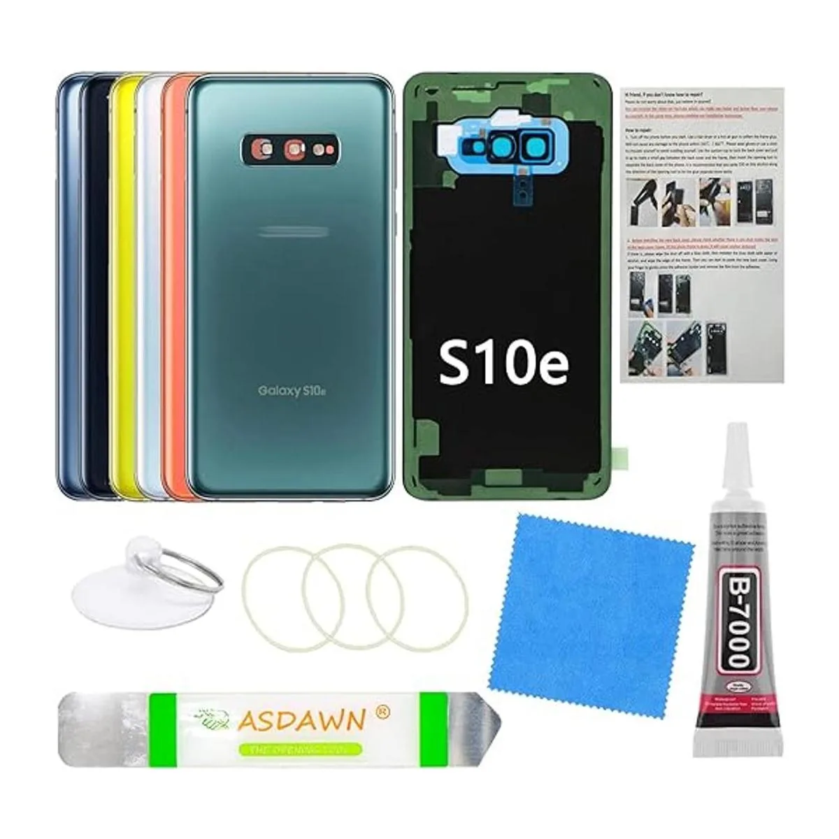 Funda de vidrio trasera para Galaxy S10e con lente de cámara preinstalada todo el adhesivo manual de instalación kit de herramientas de reparación para Samsung Galaxy S10e SMG970 todos los portadores verde prisma