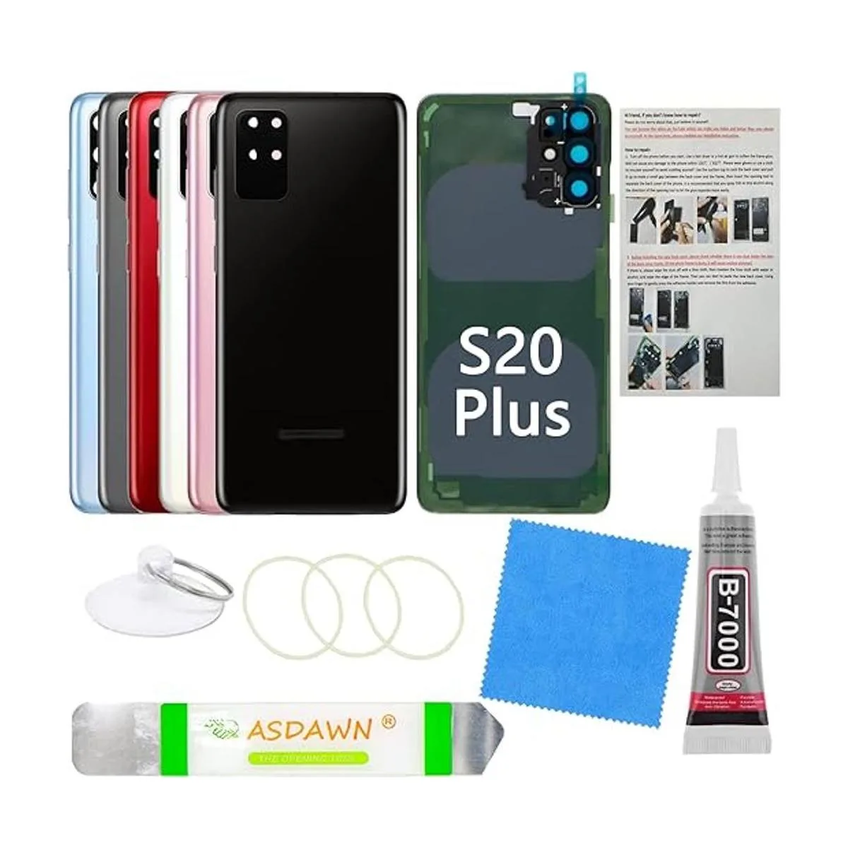 Funda de vidrio trasera para Galaxy S20 con lente de cámara preinstalada todo el adhesivo manual de instalación herramientas para Samsung Galaxy S20 Plus 5G SMG985 SMG986 All Carriers negro cósmico