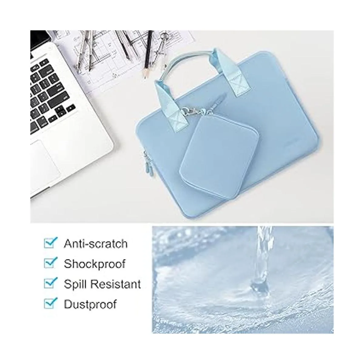 Funda elástica de neopreno para laptop compatible con MacBook AirPro M1 M2 de 13 a 14 pulgadas, XPS 13, Surface Laptop de 13.5 pulgadas, repelente al agua, con asa y funda pequeña, color azul cielo