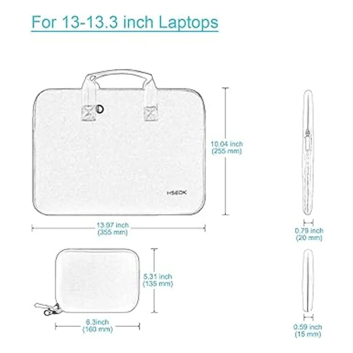 Dimensiones y compatibilidad: la dimensión interna de la bolsa grande es: 13.58 x 0.79 x 9.64 pulgadas largo x ancho x alto; la dimensión interna de la bolsa pequeña adicional es: 5.71 x 0.59 x 5.12 pulgadas largo x ancho x alto; se adapta a MacBook Air/Pro M1 M2 de 13.0 pulgadas. 5 pulgadas, XPS 1 Cuadernos de 3 a 14 pulgadas y más populares de 13 a 13.5 pulgadas.