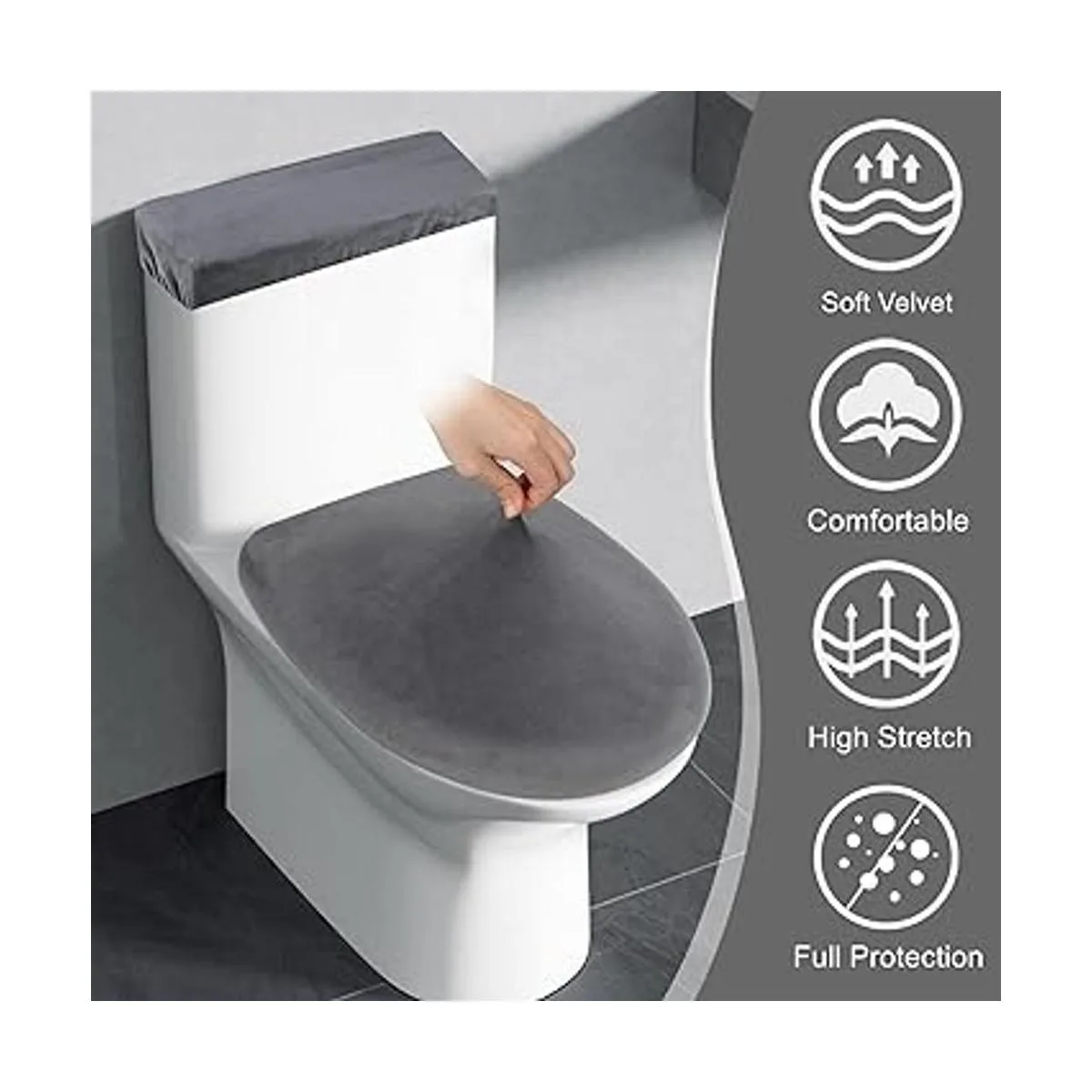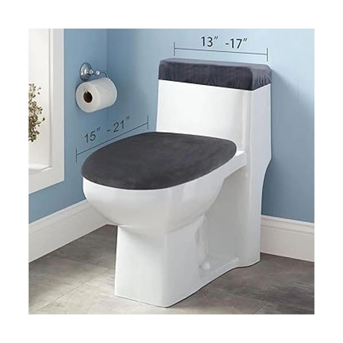 Funda elástica de terciopelo para tapa de inodoro y tapa de tanque de inodoro, juego de funda de tapa de inodoro súper suave de felpa de terciopelo de lujo, con parte inferior elástica, lavable a máquina, gris oscuro