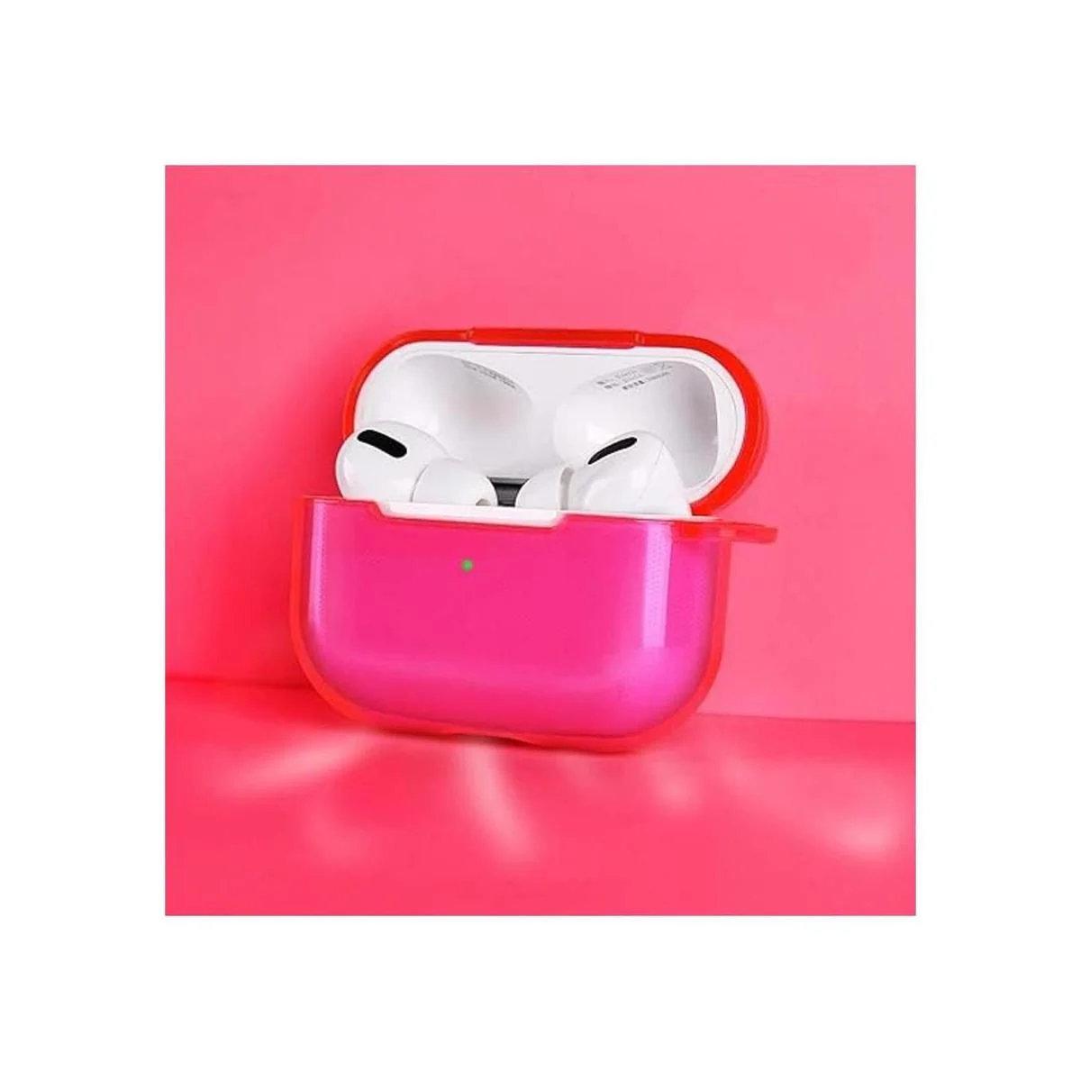 Funda para AirPods Pro AIRSPO transparente para AirPods Pro, funda protectora suave de TPU para Airpod Pro 2019 con llavero Airpods Pro funda protectora de piel neón rosado intenso