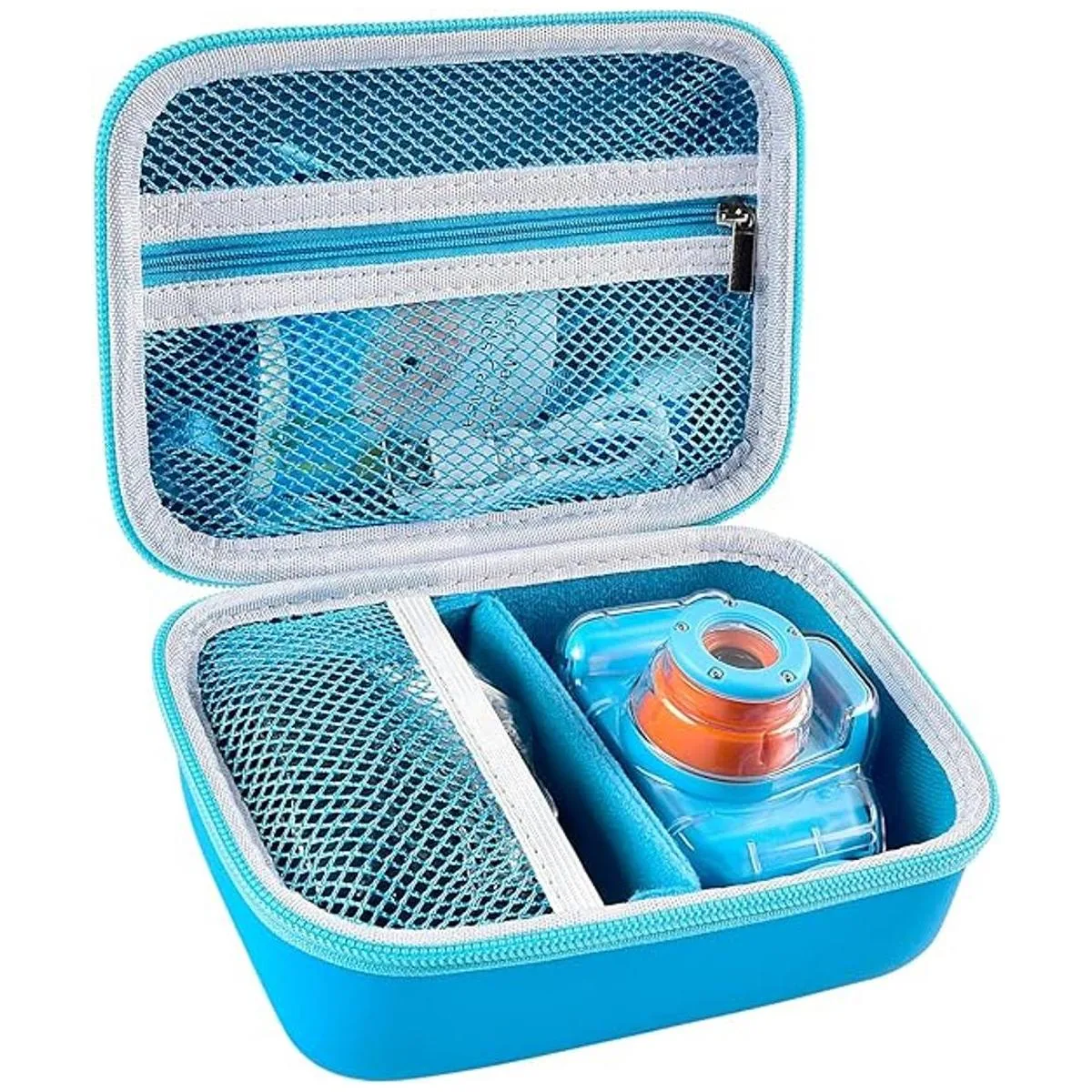 Contenedor de cámara de video para niños. Material de alta calidad: bolsa de juguetes impermeable hecha de material EVA duro, que es antigolpes, resistente a los arañazos, proporciona una protección adecuada a los juguetes cámaras submarinas para niñas de golpes, caídas y arañazos. El forro interior suave de la caja de cámara de transporte para niños aporta una condición de almacenamiento segura y cómoda a la cámara de acción para niños de 3 a 12 años. Mientras tanto, las bolsas de malla con cremallera del soporte duro para levas mantienen los accesorios cómodamente en su lugar, proporcionando triple protección.