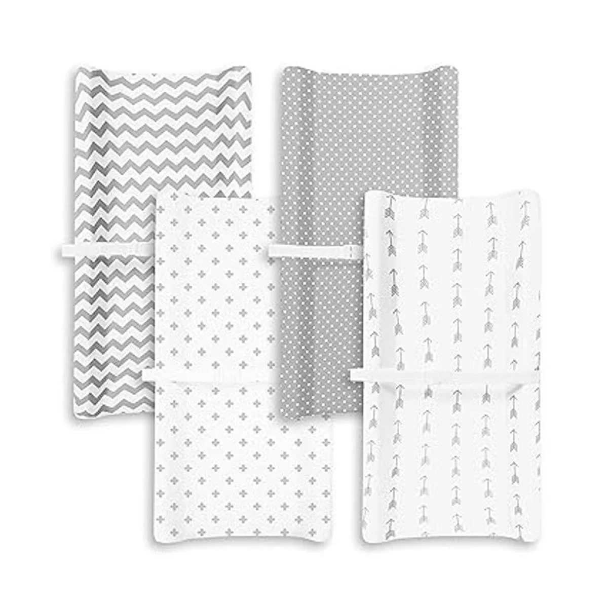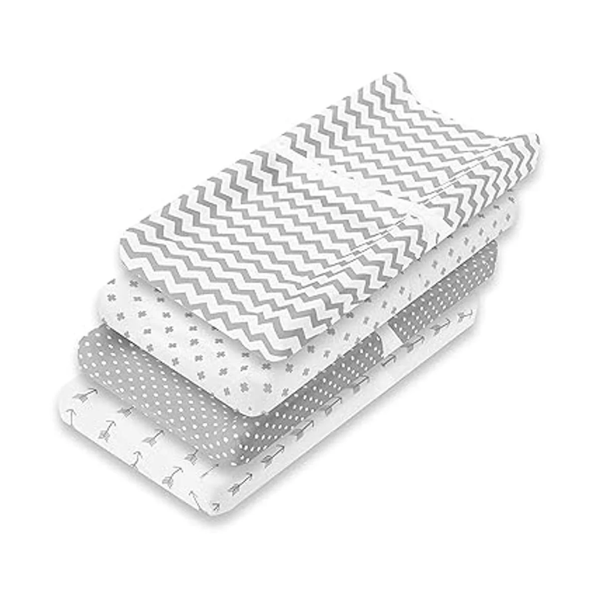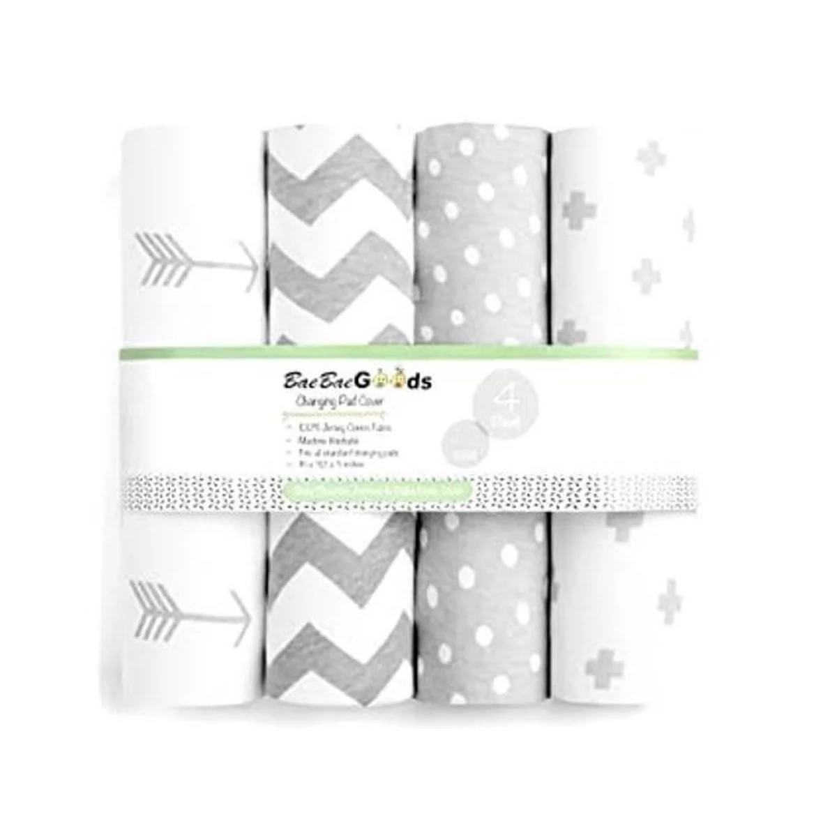Funda para cambiador de bebé, 4 unidades, de algodón puro, lavable a máquina, color gris y blanco, cambiador de pañales