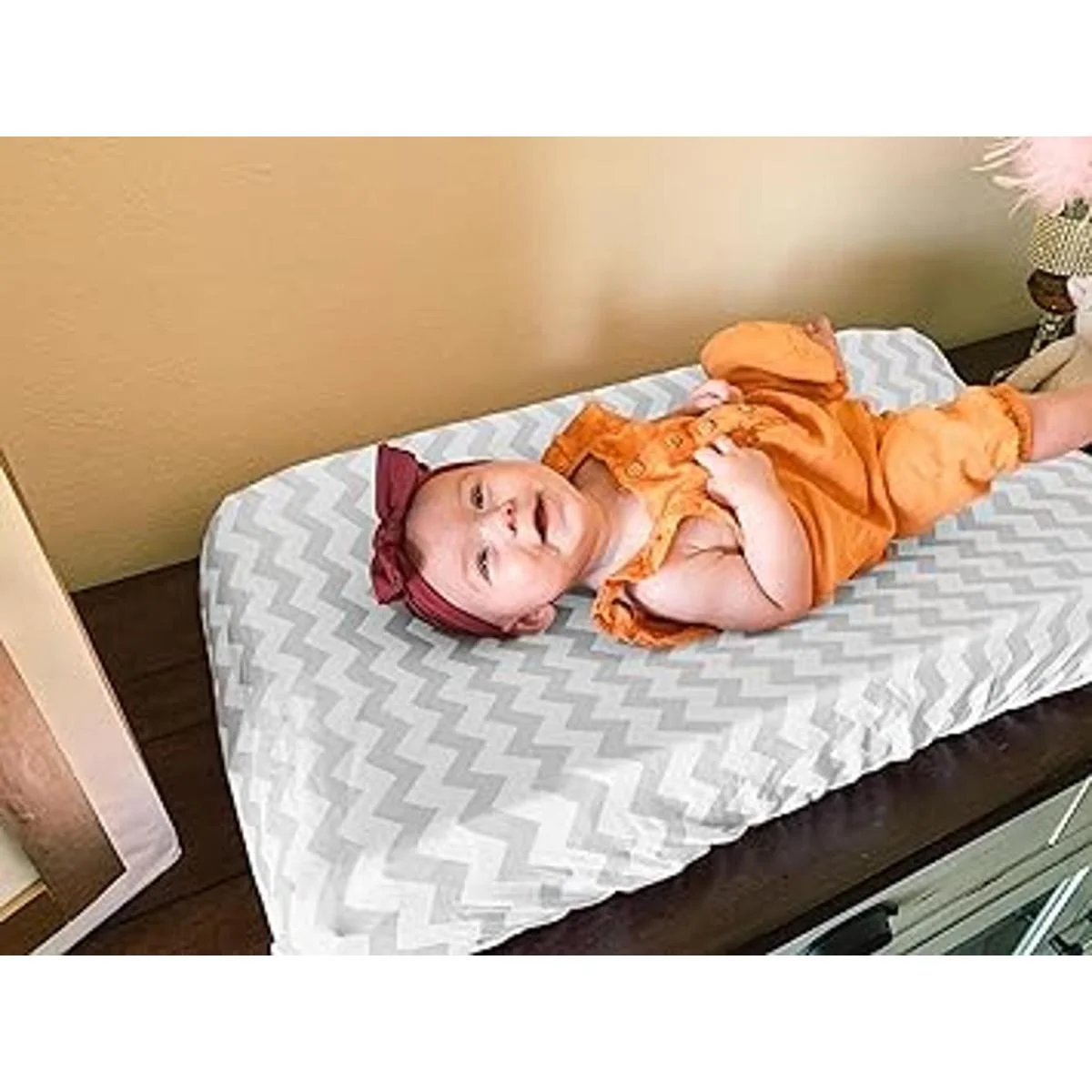 Fundas de algodón puro para cambiar: nuestras fundas para cambiadores han sido diseñadas para adaptarse a cambiadores de tamaño estándar para que puedas mostrarlas en la habitación de tu bebé para adaptarse perfectamente al estilo de decoración. No solo se ven geniales, sino que son súper suaves y cómodos para que el bebé se acueste después del baño o cuando se cambia el pañal