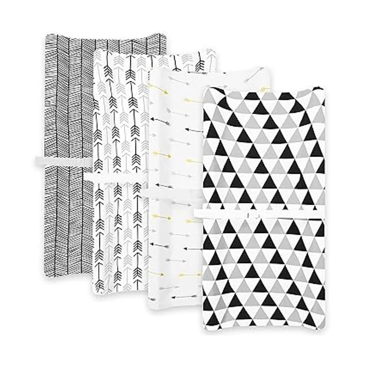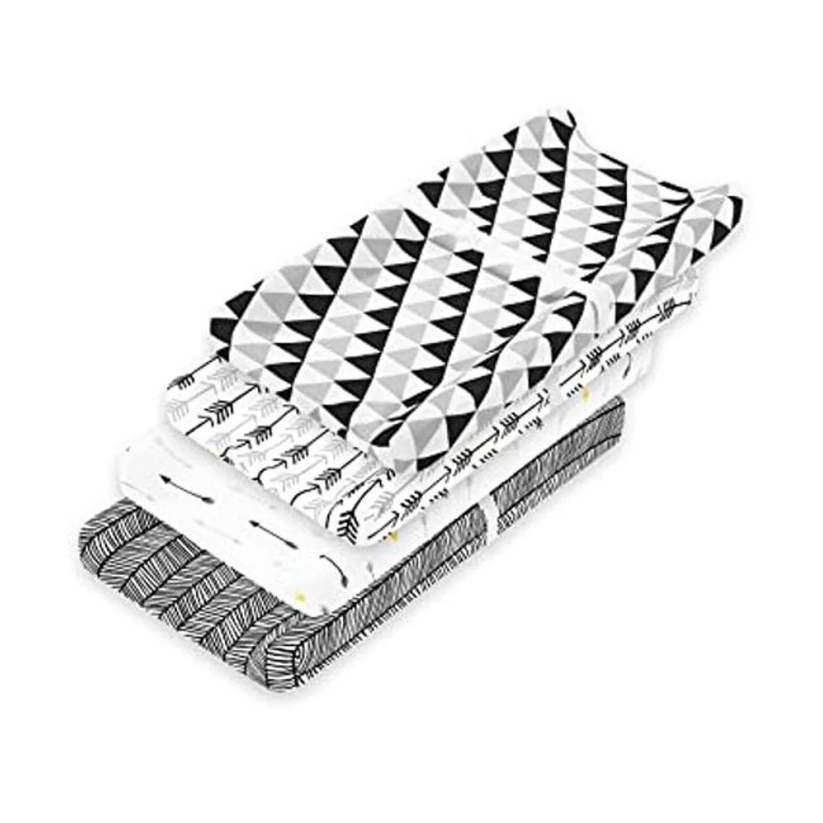 Funda para cambiador Fundas para cambiador de bebé, paquete de 4 Funda de cojín cambiador para niño o niña Algodón puro lavable a máquina en blanco y negro Cambiador de pañales de cambio de pañales