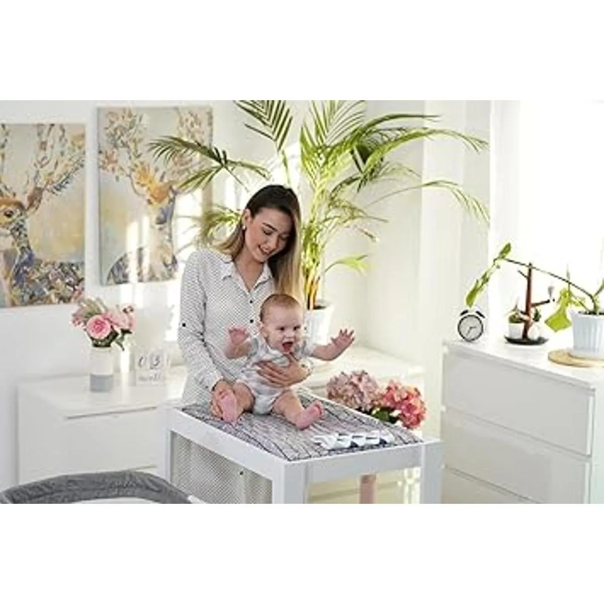 Funda de cambiador de pañales limpia e higiénica: mediante el uso de nuestras fundas de cambiador blancas y negras te garantiza una superficie limpia e higiénica para cada cambio de pañales. Simplemente coloca uno fresco cuando sea necesario para que tu cambiador esté libre de gérmenes y listo para cada cambio de pañales en cuestión de segundos