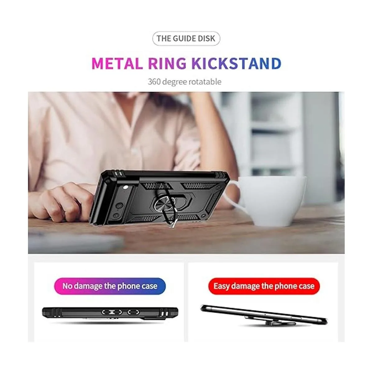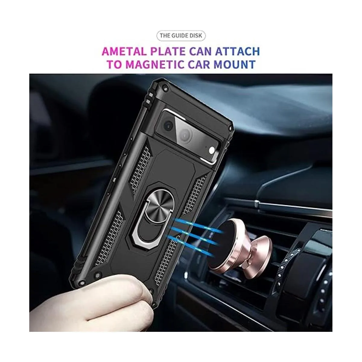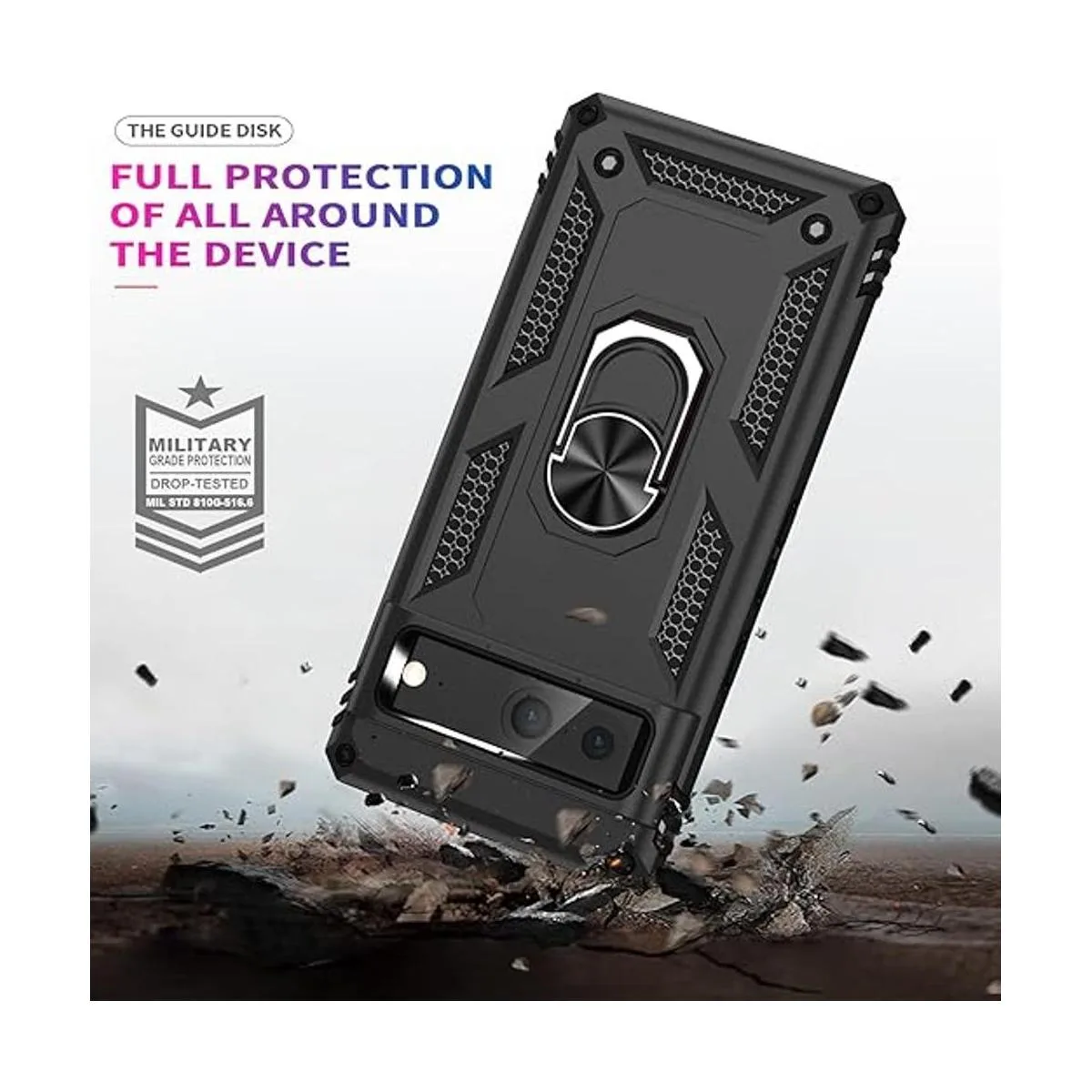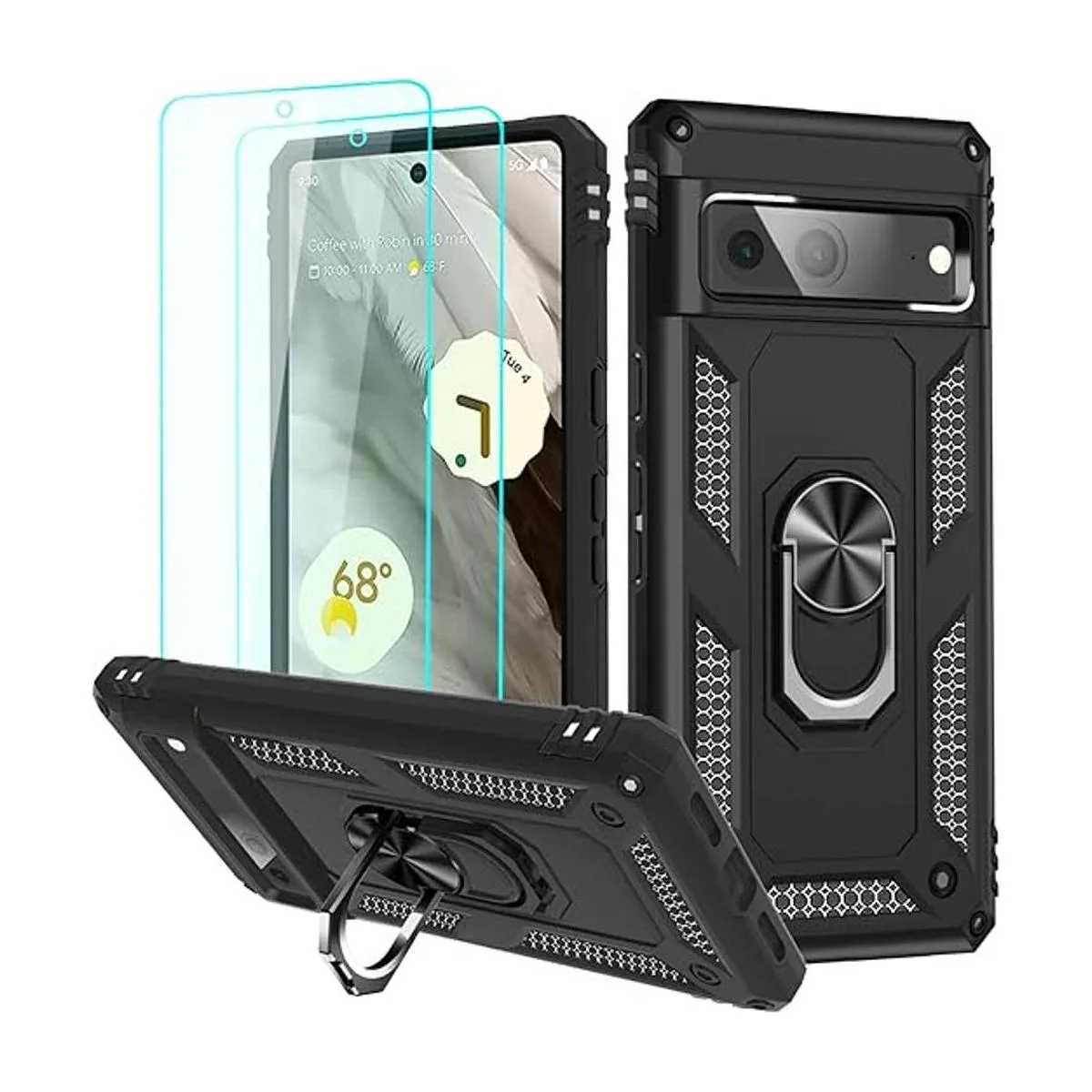 Funda para Google Pixel 7, con protector de pantalla HD paquete de 2 funda de teléfono de grado militar a prueba de golpes, cubierta probada de caída de 16 pies con soporte magnético giratorio, funda protectora de montaje de automóvil, color negro