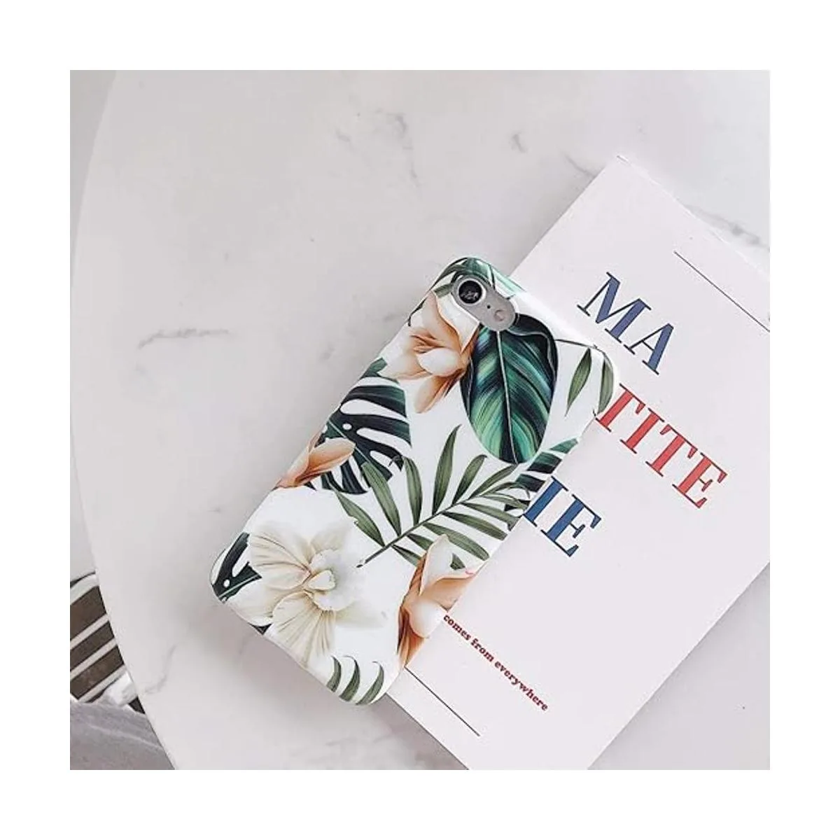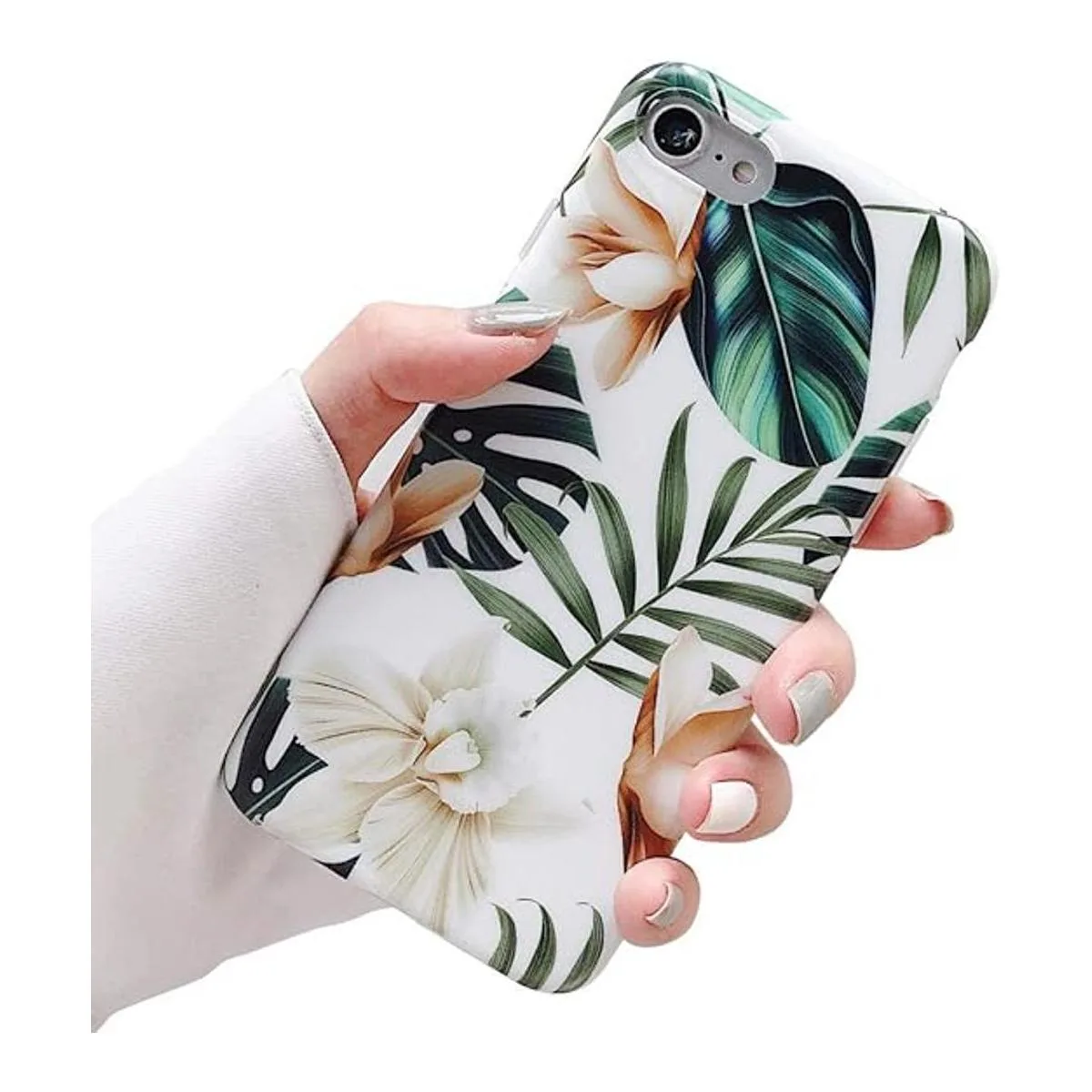 Funda para iPhone SE2022, SE2020, 8 casos, 7 fundas para mujeres y niñas, ooooops hojas verdes con diseño de patrón floral blanco y marrón, ajuste delgado, cubierta protectora suave de cuerpo completo hojas y flores
