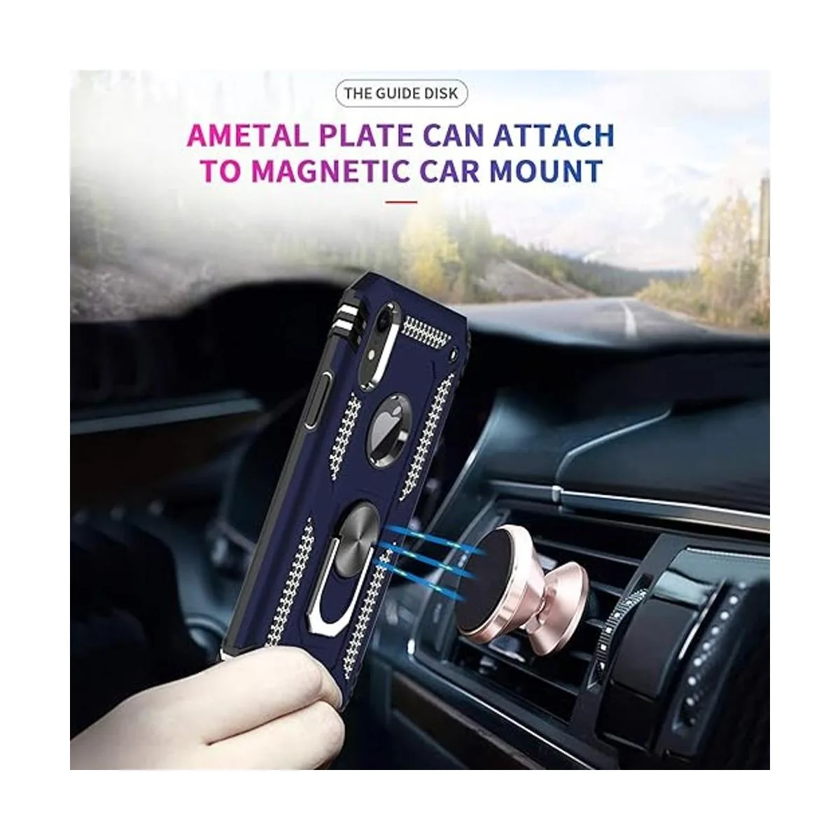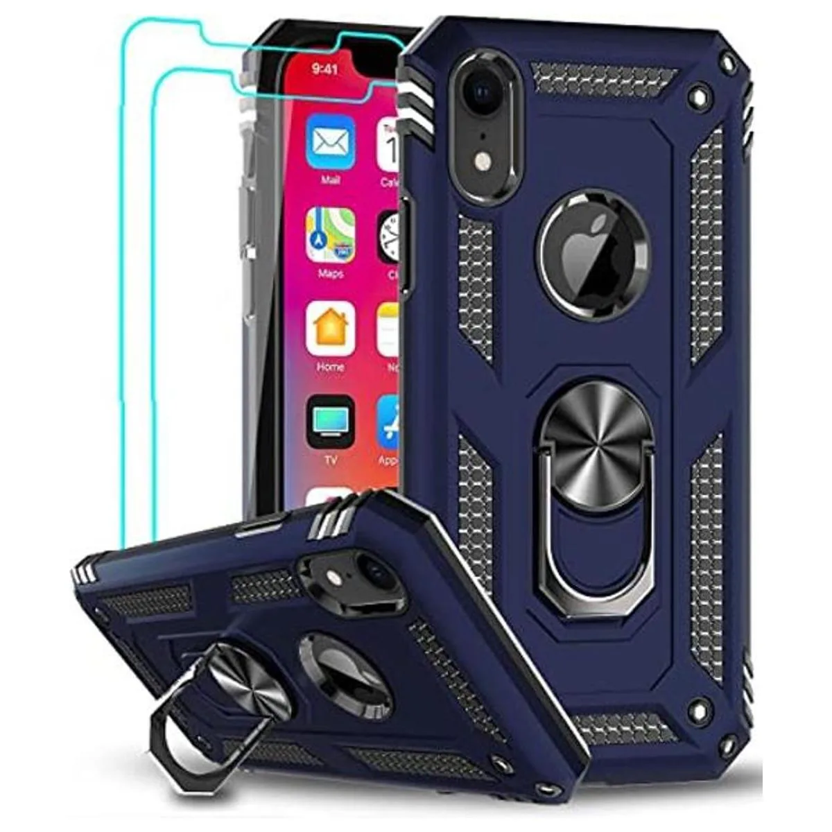 Funda para iPhone XR con protector de pantalla de vidrio templado 2 unidades, con armadura de grado militar con soporte para anillo de coche para iPhone XR