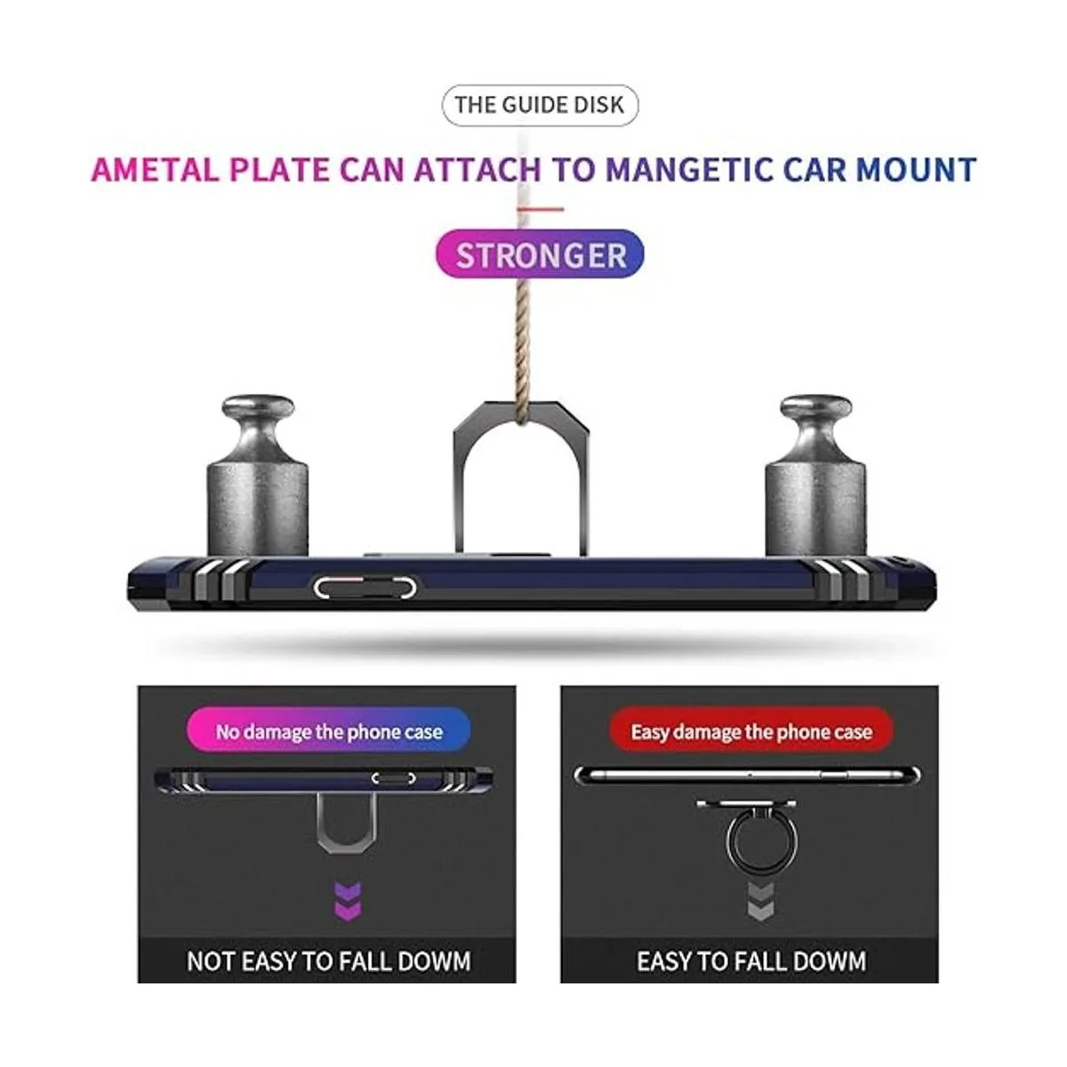 Diseño de soporte giratorio de 360 El soporte de metal puede girar 360, fácil de girar y resistente en la funda. El soporte integrado te da la comodidad para ver vídeos y películas con manos libres con comodidad y estabilidad deseadas. Además, hoja magnética de metal integrada para una absorción estable, que se puede adsorber directamente al soporte magnético del coche. No incluye el soporte magnético para coche.