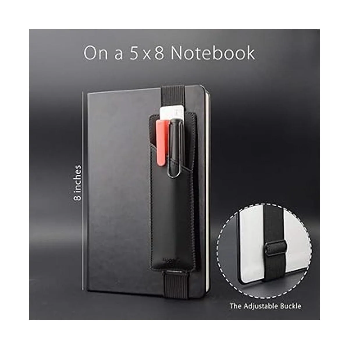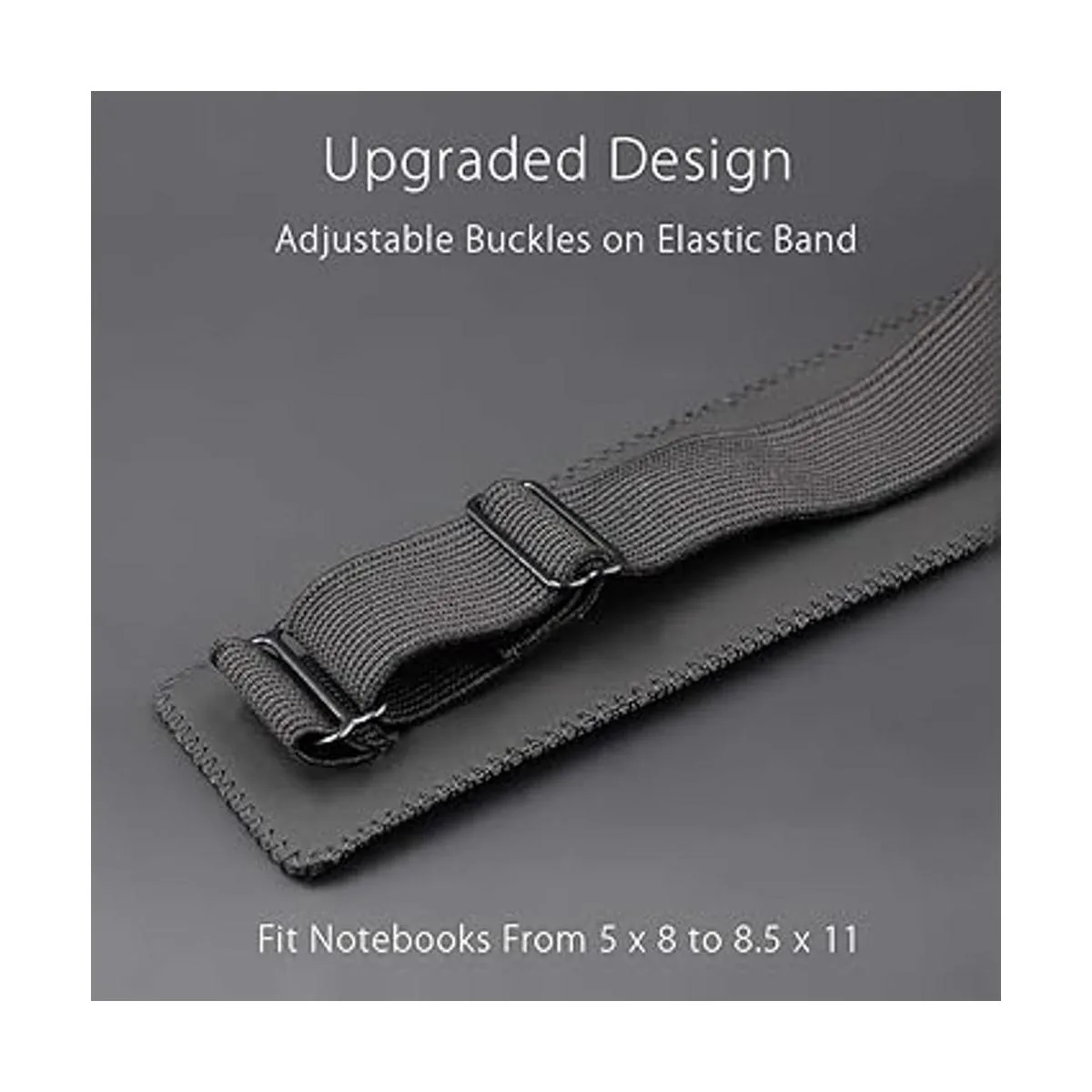 Elástico ajustable: Diseño mejorado, ahora con dos hebillas ajustables en el elástico, lo que hace que este soporte para bolígrafo se ajuste a cuadernos de tapa dura de varios tamaños.