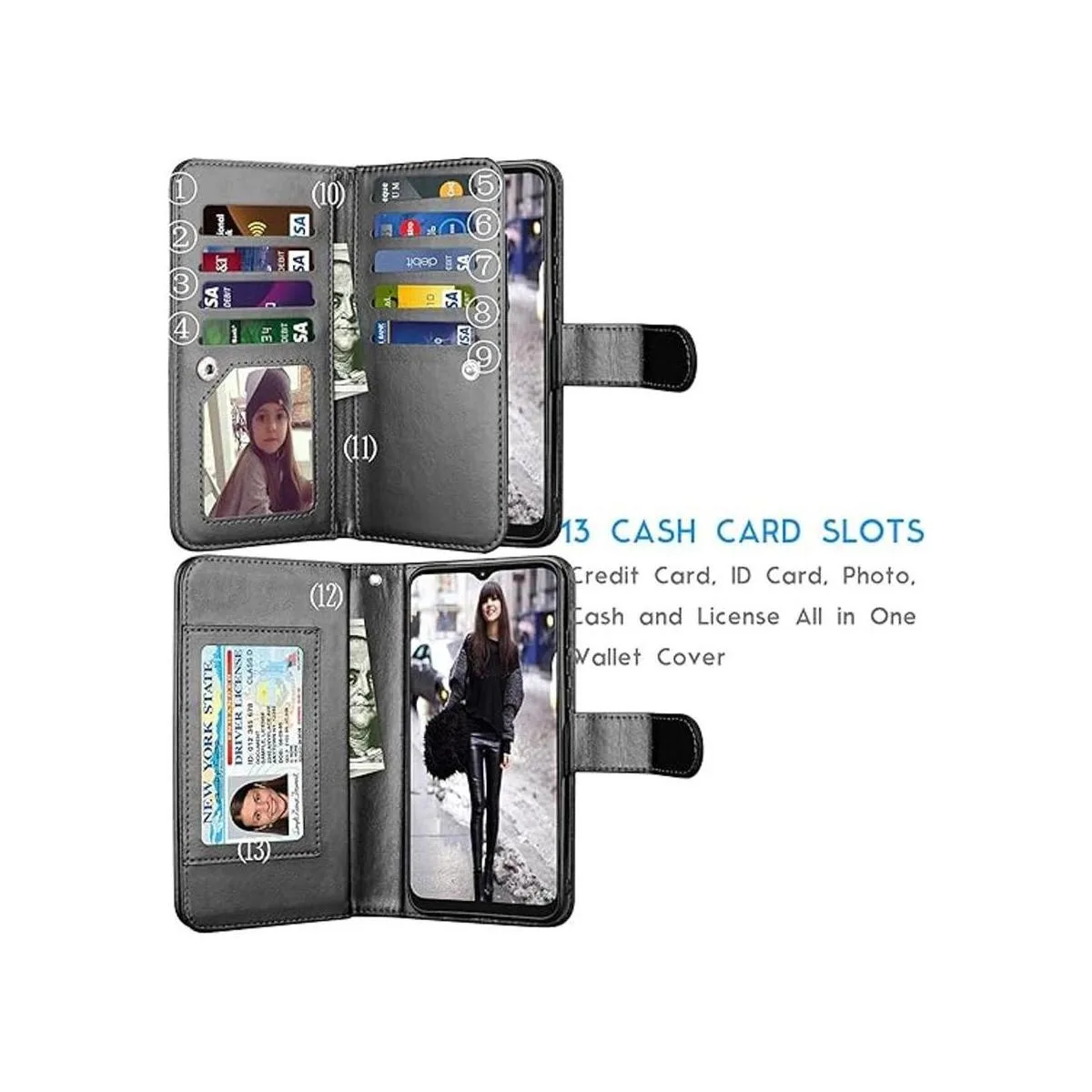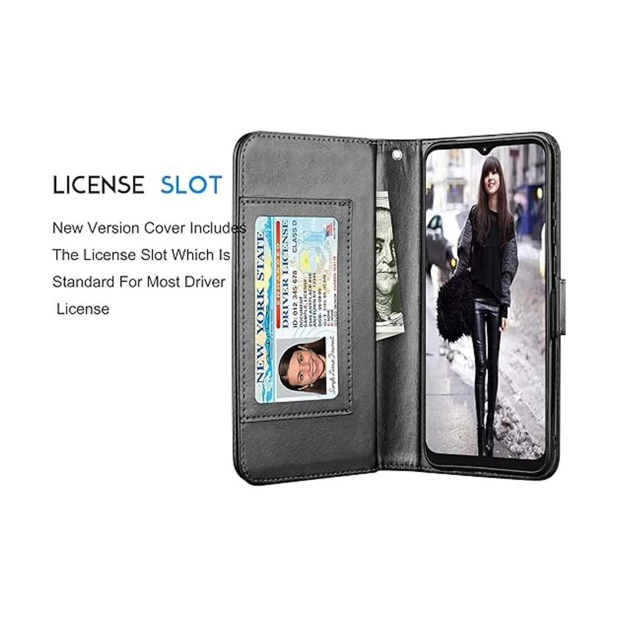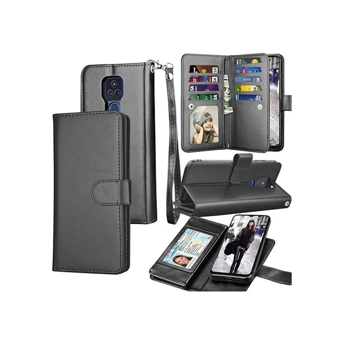 Funda tipo cartera para Moto G Play 2021, esta funda también es multifuncional. Bolsillos integrados para tarjetas y funda para guardar cómodamente tu identificación, licencia, fotos, dinero en efectivo y tarjetas de crédito.