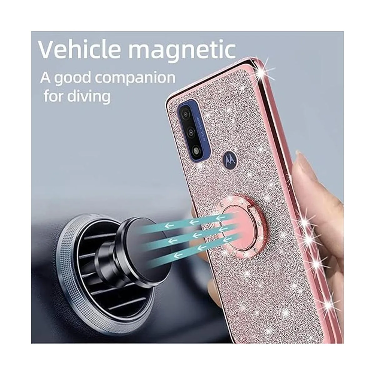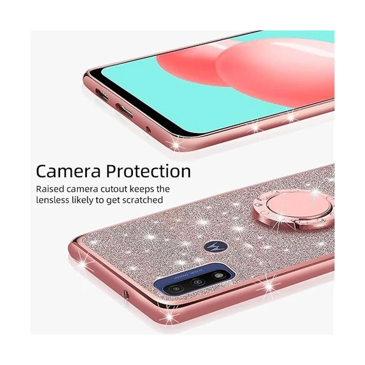 Compatible con: esta funda solo es compatible con Motorola Moto G Pure 2021 y Moto G Power 2022. No es compatible con Moto G Power 2021 / Moto G Stylus 2021. El borde con diamantes de imitación artificiales incrustados, color brillante con elementos brillantes de purpurina en la parte posterior y hace que tu teléfono se vea bonito y lujoso.