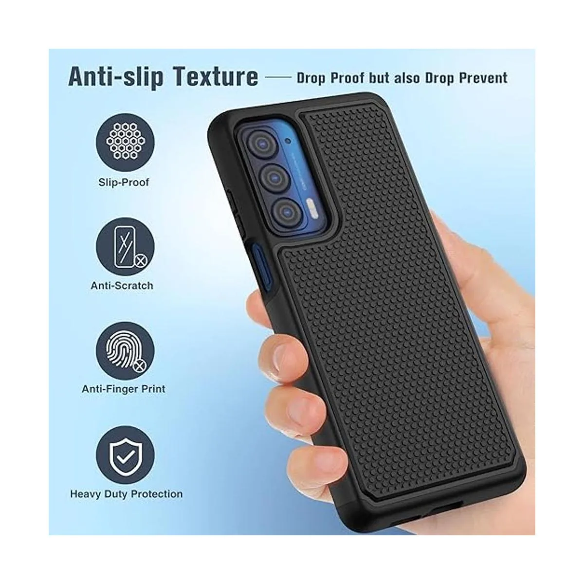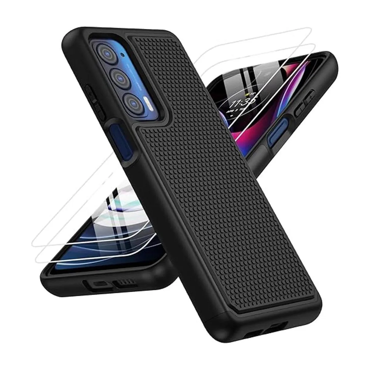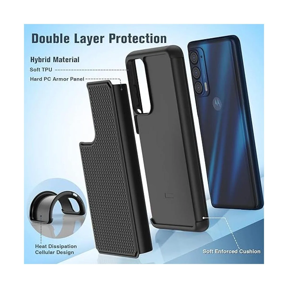 Funda para Motorola Moto Edge 2021 Edge 5G UW funda protectora de doble capa resistente a prueba de golpes, resistente con parte trasera texturizada antideslizante, parachoques de protección militar, 6.8 pulgadas negro negro