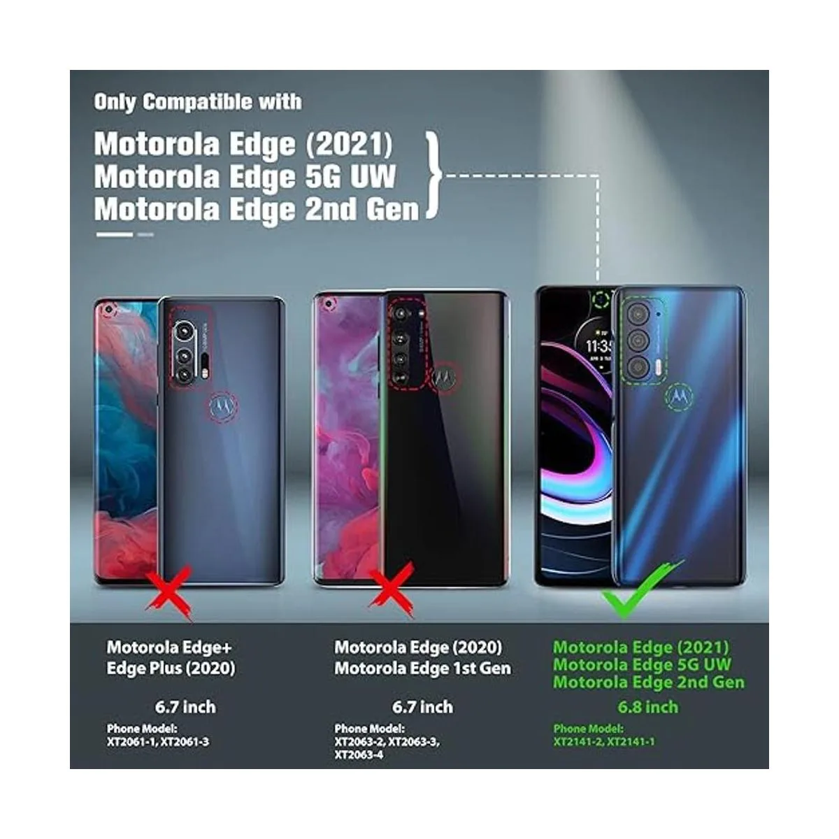 Solo compatible con Motorola Edge 5G UW modelo de teléfono: XT21411 y Motorola Edge 2021/versión desbloqueada de 128 GB 256 GB Memory Nebula Blue modelo de teléfono: XT21412. Paquete: fundas básicas para teléfono inteligente paquete de 2 protectores de pantalla de vidrio templado.