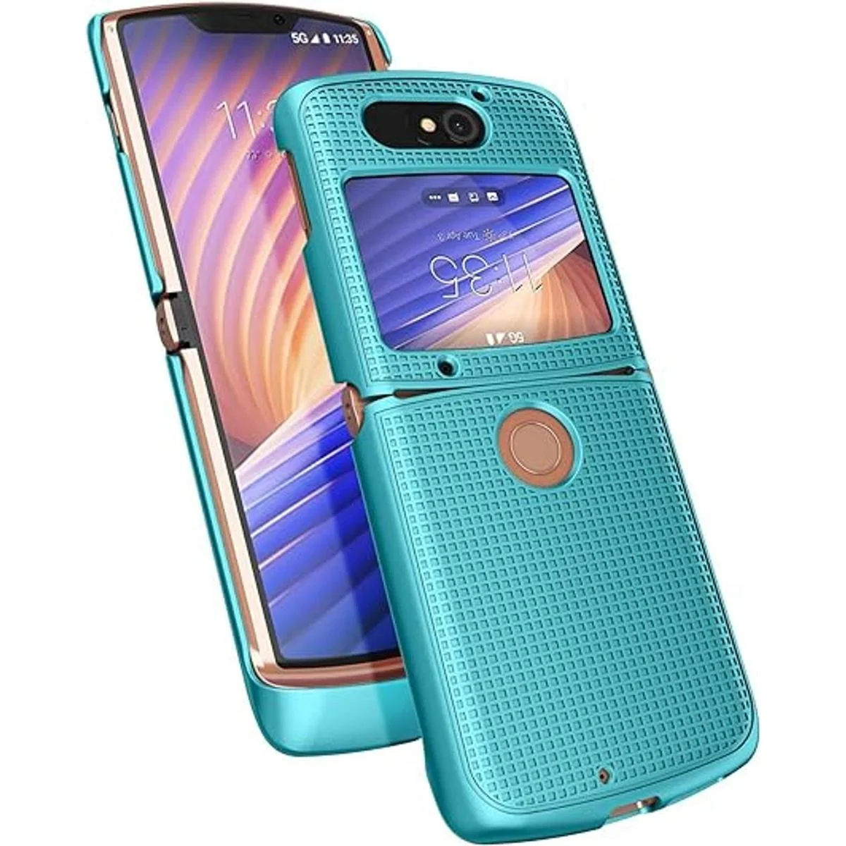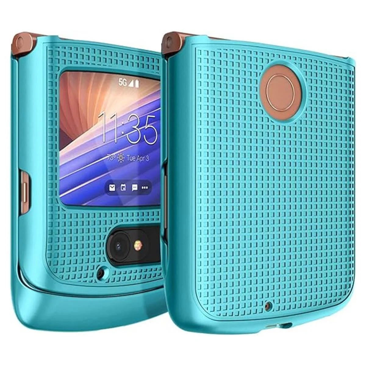 Funda para Motorola RAZR 5G Flip Phone, Nakedcellphone Verde azulado menta cian Carcasa rígida a presión textura de rejilla para Motorola Moto RAZR 5G Flip Phone 2020 XT2071