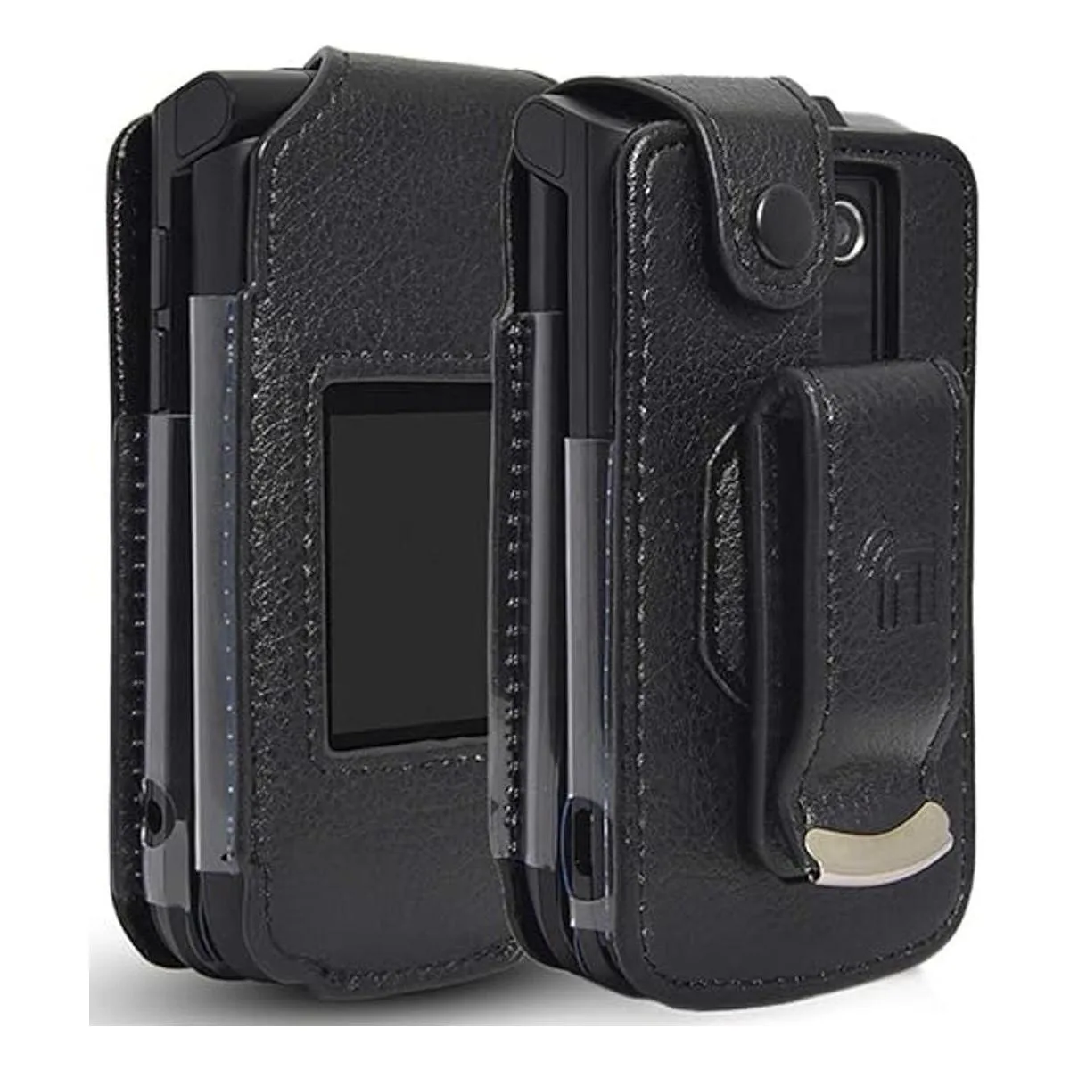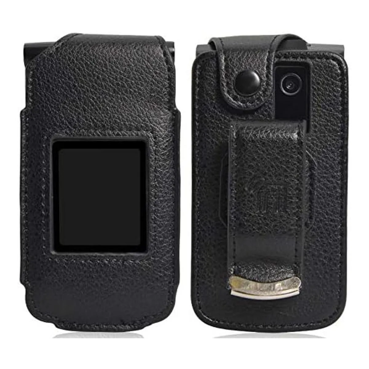 Funda para Orbic Journey, Nakedcellphone cuero vegano negro Funda de ajuste con protección de pantalla integrada y clip de cinturón de metal para Verizon Wireless Orbic Journey VL Flip Phone ORB2200LBVZ