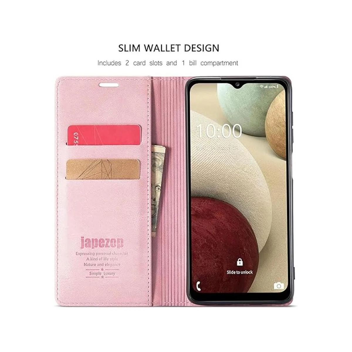 Multifunción: funda tipo cartera para Samsung Galaxy A12 con 2 ranuras para tarjetas y 1 bolsillo lateral, combinación perfecta de cartera y funda para teléfono celular. Te permite acceder fácilmente a tus tarjetas o dinero en efectivo convenientemente, minimizando la necesidad de llevar extrasAdecuado para la vida cotidiana y viajes de negocios. Nota: sostener demasiadas tarjetas puede debilitar la funcionalidad de cierre magnético