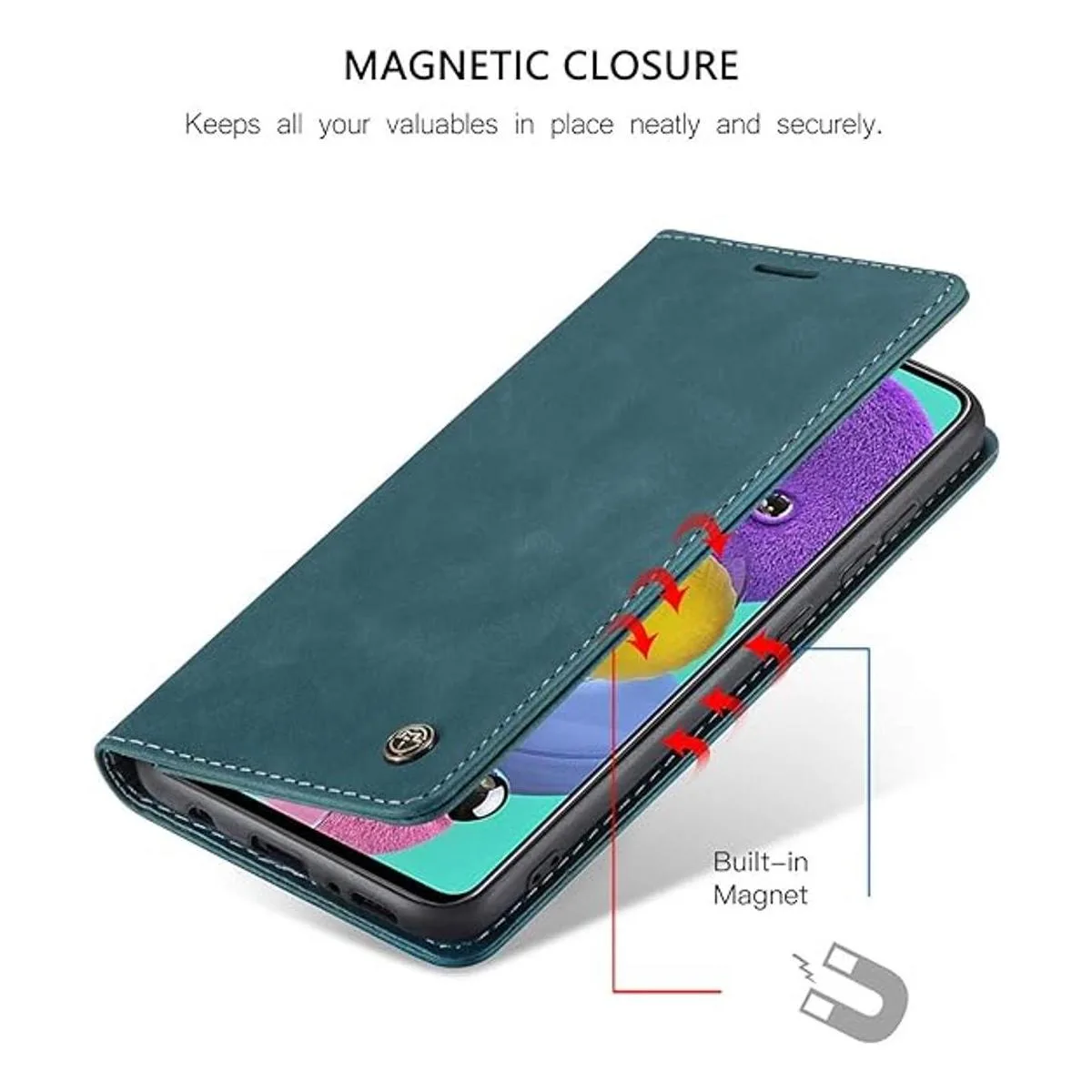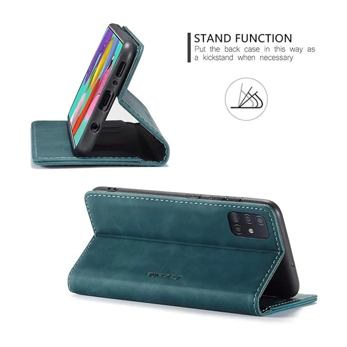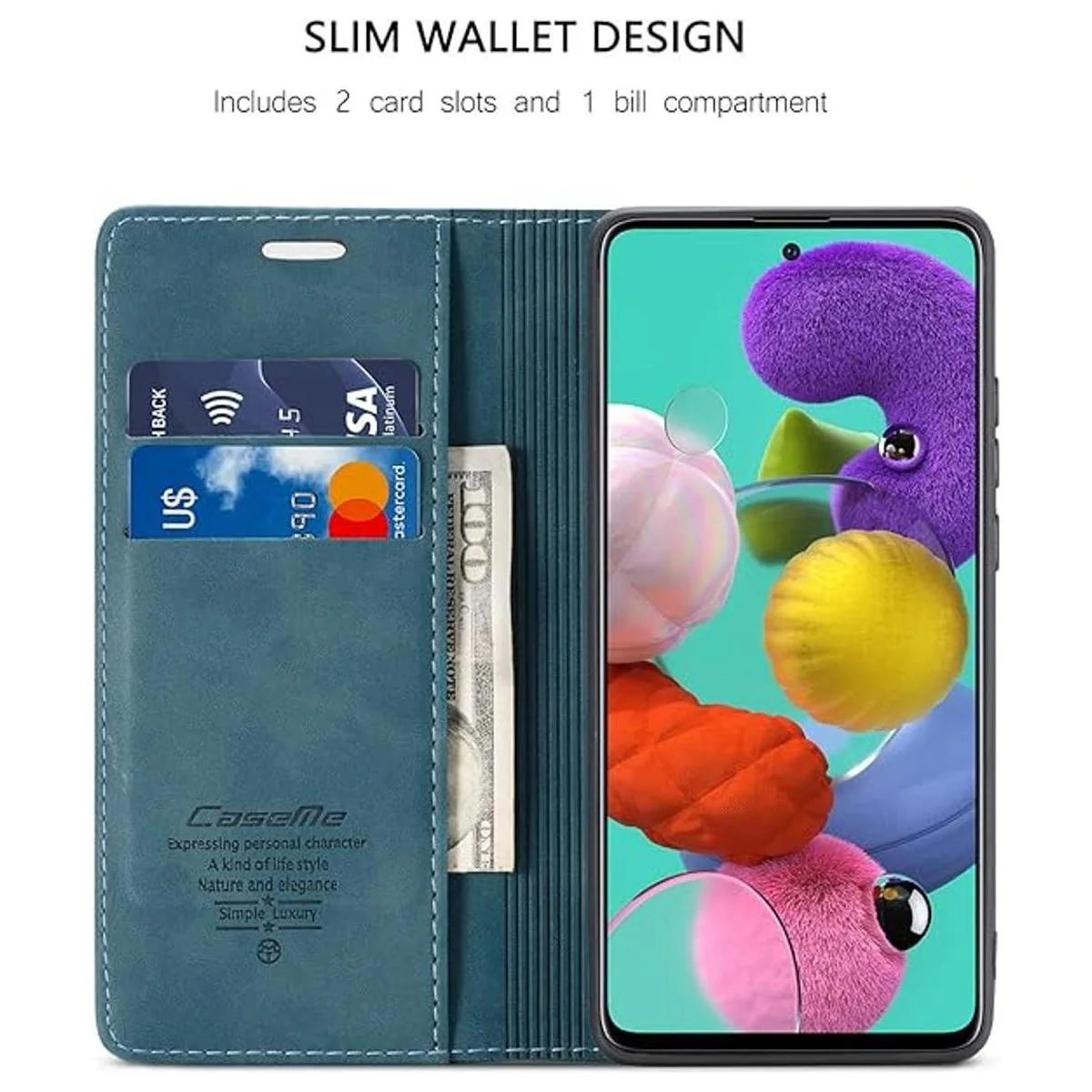 Multifunción: funda con tapa para Samsung Galaxy A51 con 2 ranuras para tarjetas y 1 bolsillo lateral, combinación perfecta de cartera y funda para teléfono celular. Te permite acceder fácilmente a tus tarjetas o dinero en efectivo convenientemente, minimizando la necesidad de llevar extrasAdecuado para la vida diaria y viajes de negocios. Nota: sostener demasiadas tarjetas puede debilitar la funcionalidad del cierre magnético